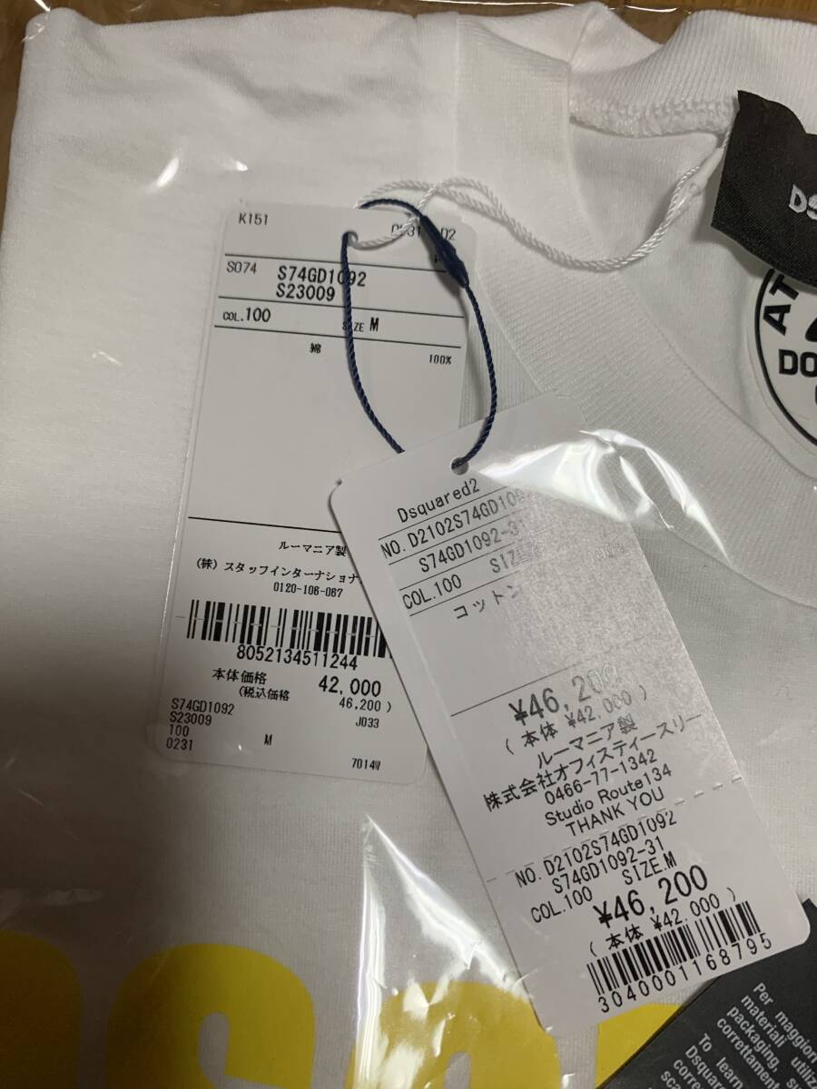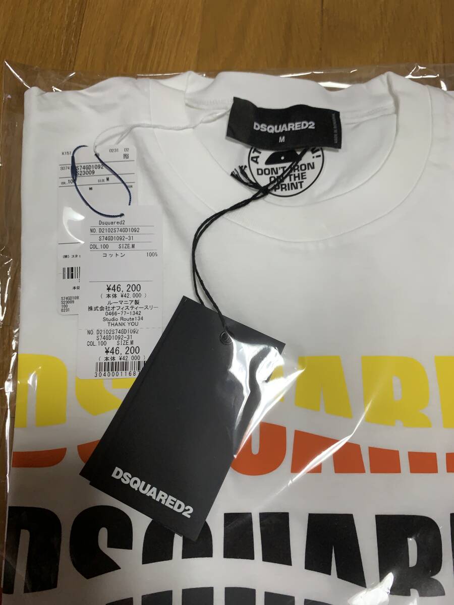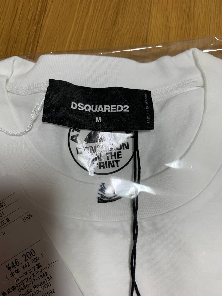 DSQUARED2 正規品Tシャツです。サイズM 色ホワイト コットン100% 身幅52 着丈69 袖20 肩幅45 新品未使用未開封品です。定価46200円 発送はクロネコヤマトのみでお願いします。