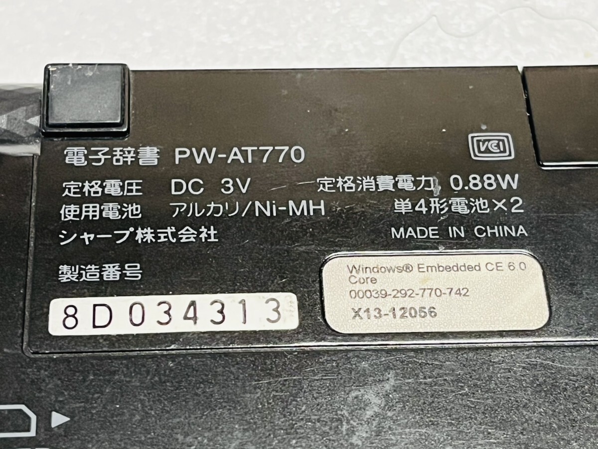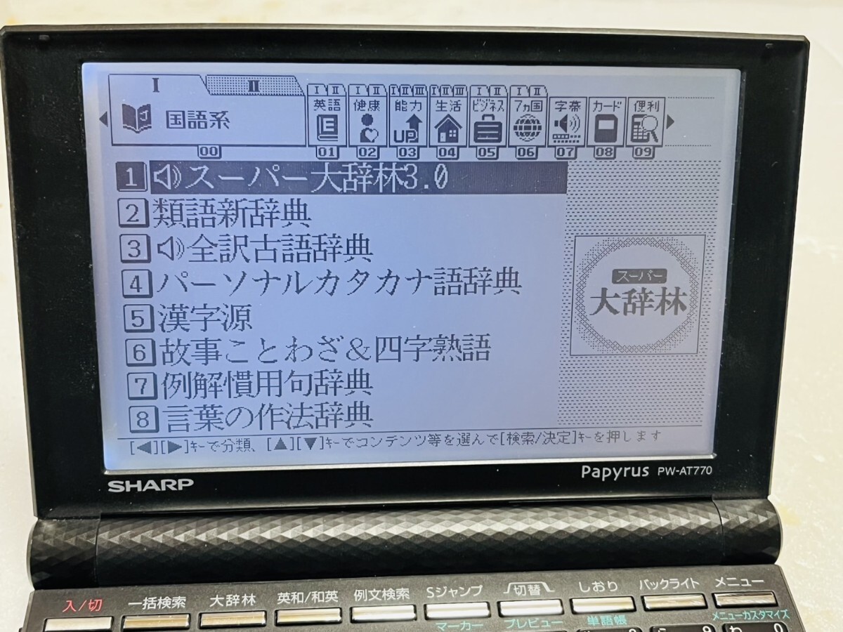 SHARP シャープ Papyrus PW-AT770 電子辞書 乾電池使用 稼動品