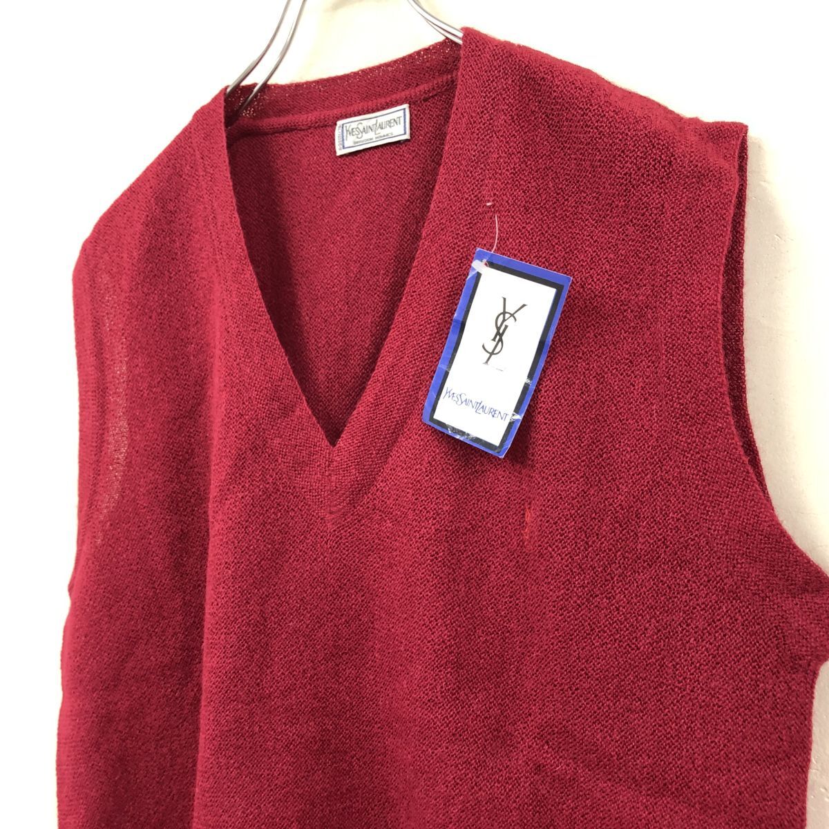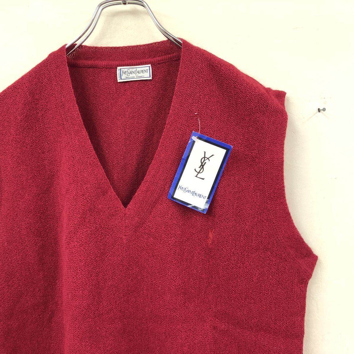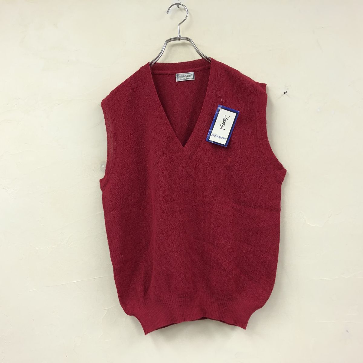 2K2884-D◆タグ付き美品◆old Yves Saint Laurent イヴ・サンローラン ピュアアルパカ ニットベスト セーター ◆ sizeS ボルドー ウール