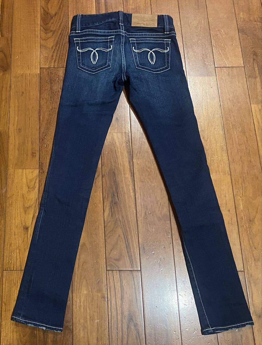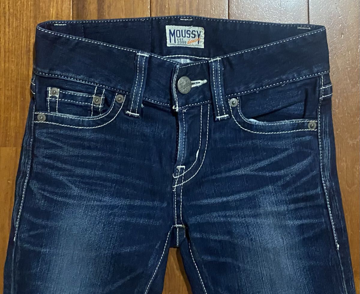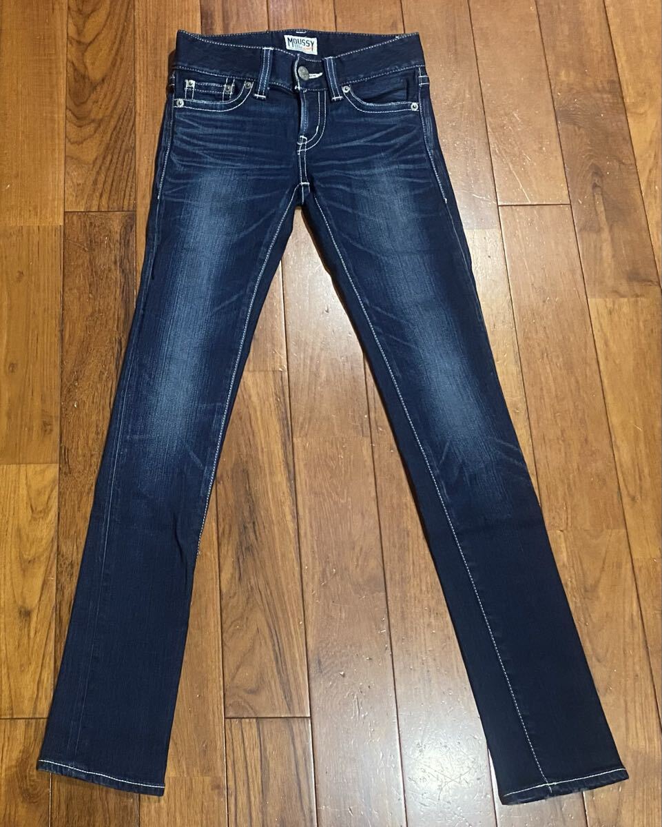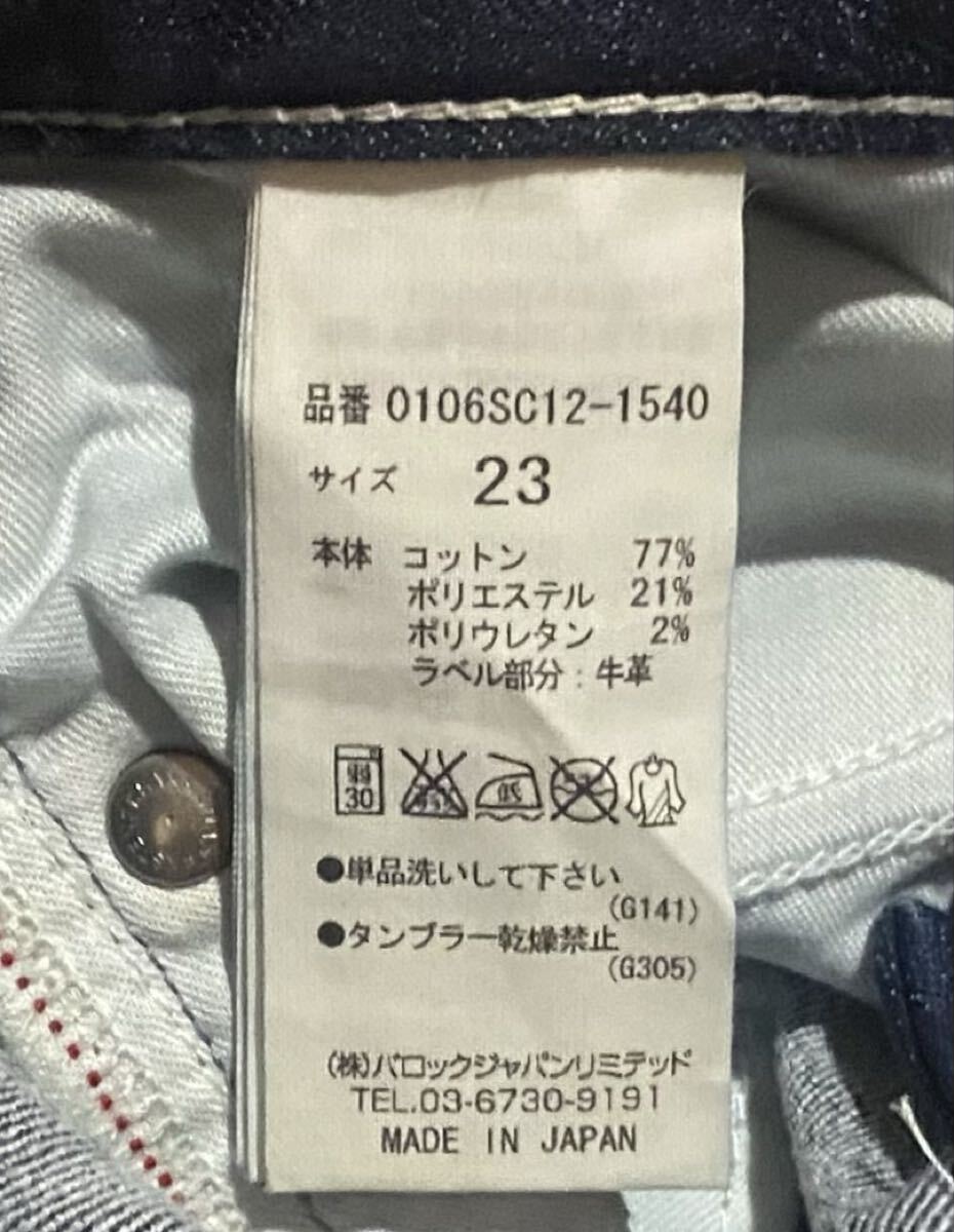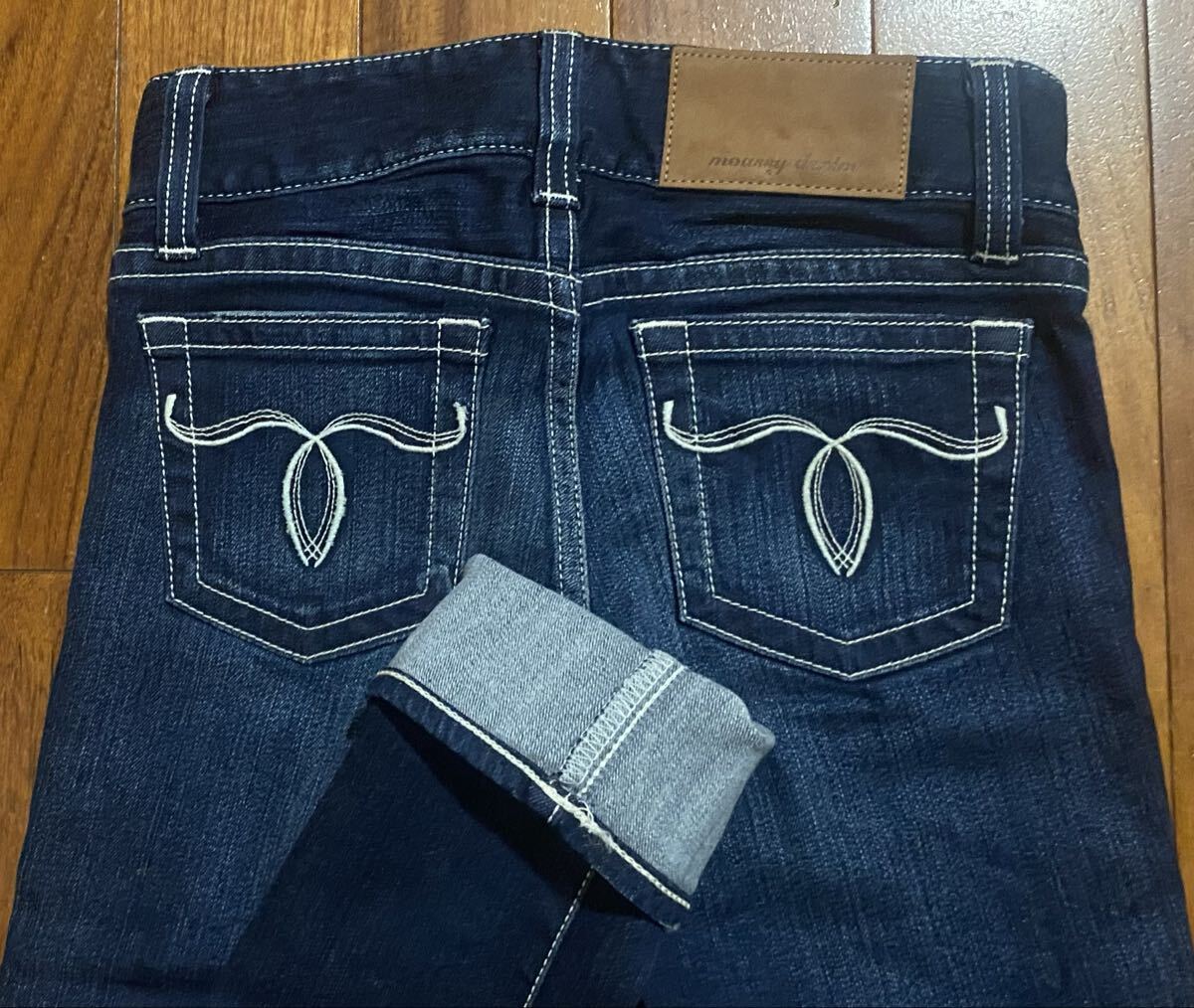 マウジーのストレッチ暖スキニーデニム(ジーンズ)、品番0106SC12-1540です。色はインディゴブルーです。USEDですが状態は良いです(10段階中8程度)。牛革パッチ、ジッパーフライ、裾はチェーンステッチです。生地はストレッチ入りでコットン77%、ポリエステル21%、ポリウレタン2%です。正規品です((株)バロックジャパンリミテッド、日本製)。サイズはW23でウエストは重ねずに平置きで約63cm、ヒップ約72cm、股上約18cm、股下約74cm、股下15cmのふともも部分約34cm、裾まわり約26cm、重量約430gです。発送はゆうパケットポストになります。