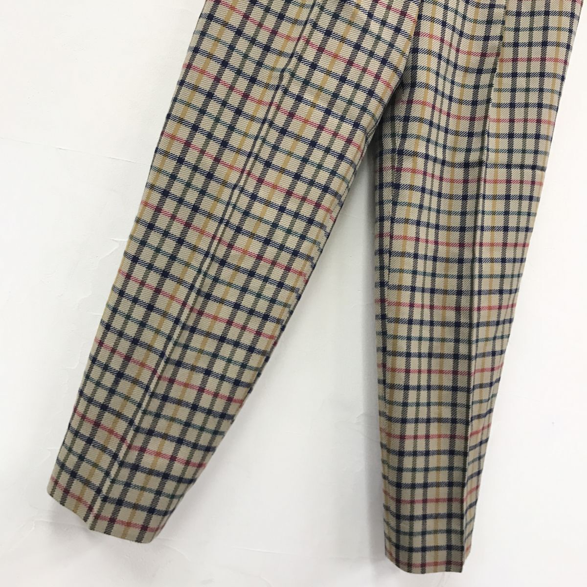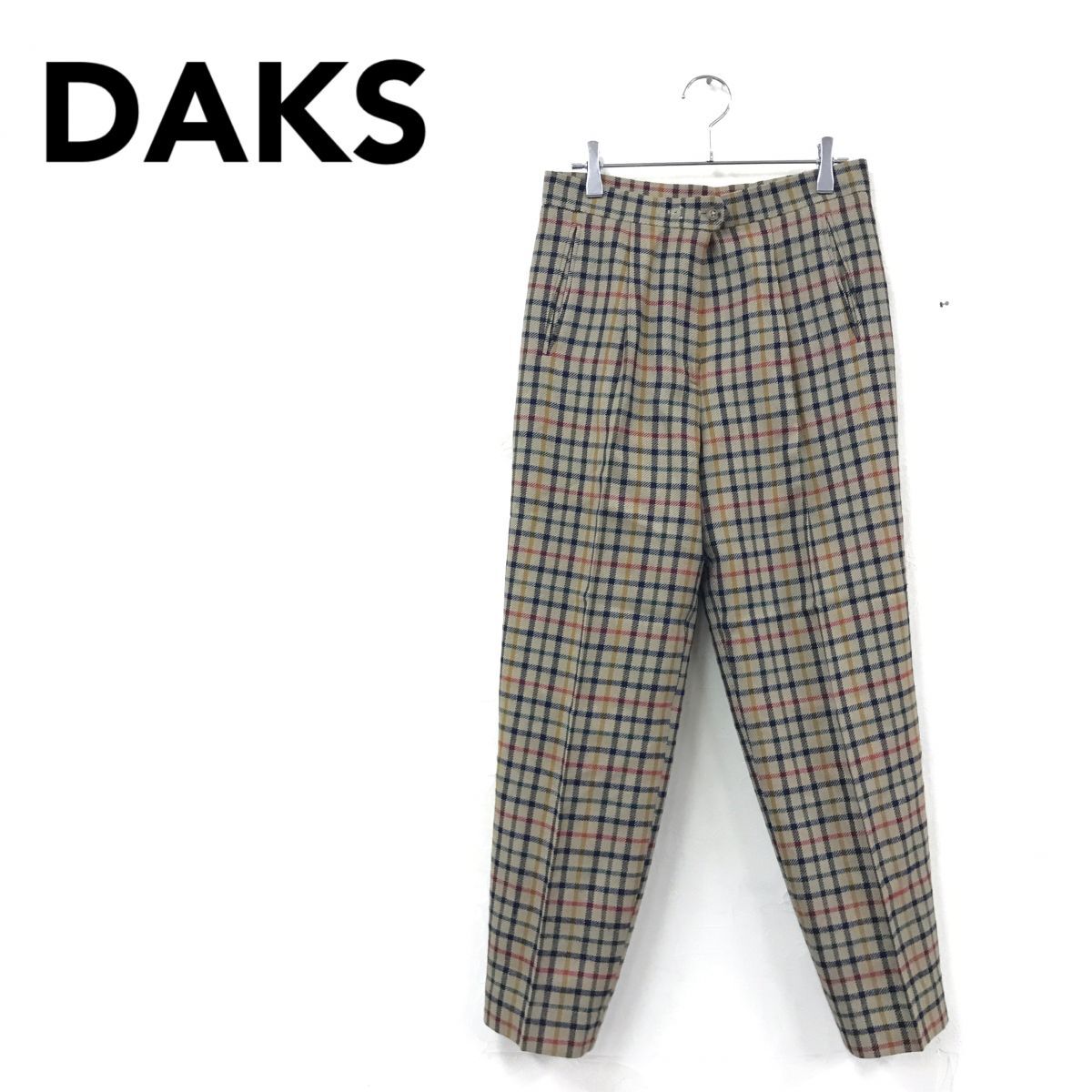 2K2682-R◆日本製 DAKS ダックス テーパードパンツ◆サイズ67-93 レディース 婦人 ボトム 毛100% ウール チェック 秋冬 ブラウン