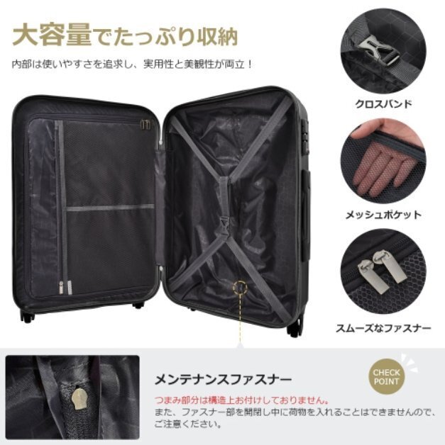 • 10.【ご注意】①内部ファスナーについて:ケース内部にあるファスナーはメンテナンス専用ファスナーとなります。修理が必要になった場合にのみ使用するファスナーのため、あえてファスナーのつまみが付いていません。お荷物を入れるものではありませんので、ご注意ください。②SSとSサイズは寸法のため、側面のハンドルと底足が付いておりません。予めご了承ください。③※掲数している写真は、ご使用のコンピューター及びスマホのモニターの種類によって、実際の商品のイメージと多少異なることがございます。予めこ了承ください。※ロットによって、製品の色は多少異なりますので、こ了承とこ理解の程よるしくお願いたします。
