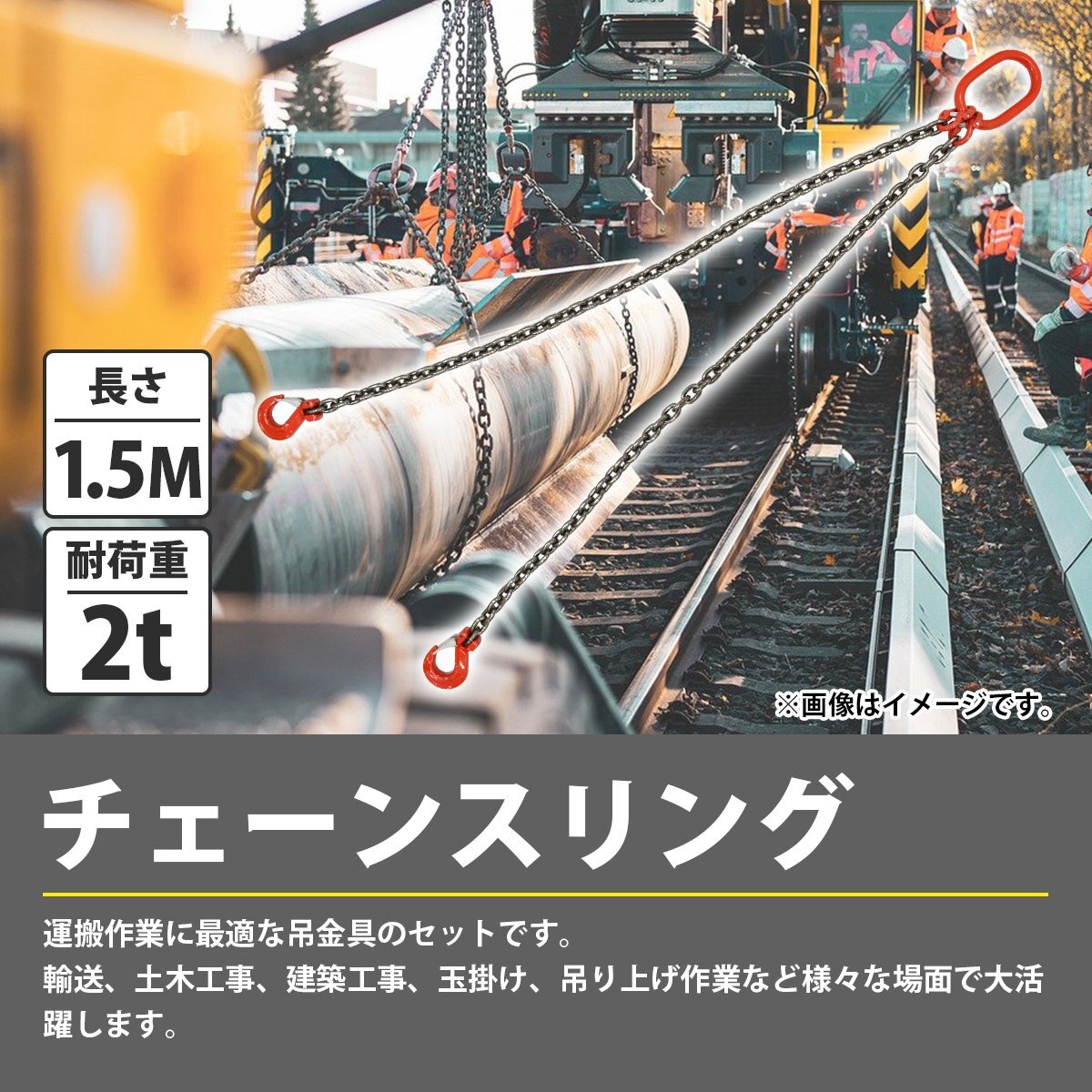 [ 2t 1.5M ]2本吊り チェーンスリング 吊り スリング チェーン フックタイプ リング付き 径8mm 長さ 1.5m 耐荷重 2t 2000kg