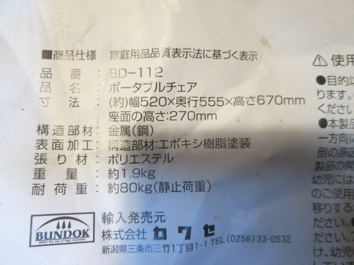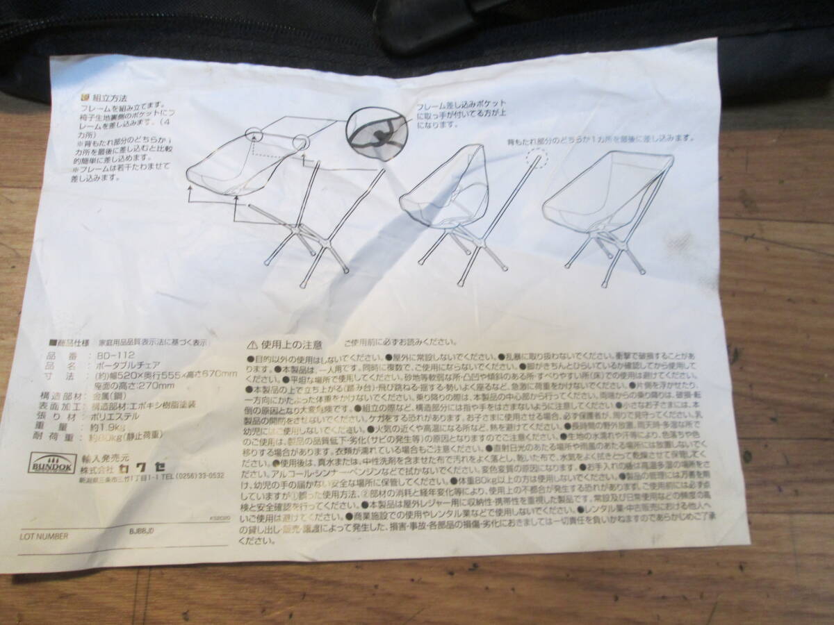 BUNDOCK 折り畳み椅子 背もたれ付 コンパクト椅子 収納ケース付属 です。