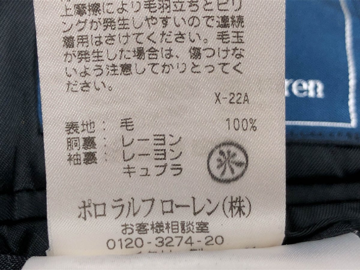 ・着用感、スレ、テカリ、脇裏地に薄いシミ汚れ、袖口裏地にシミ汚れ、ベント部分ホツレ、スラックスバックポケット中央付近に糸ツリと小さな傷がございます。ご理解の上ご購入下さい。