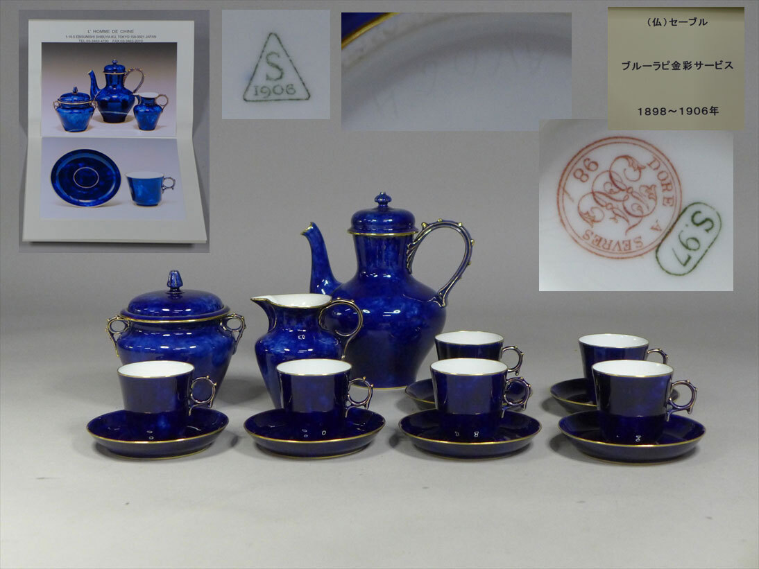 1898~1906年/オールド セーブルDore a Sevresブルーラピ金彩サービスC&Sセットです。ポット高:約20cm。カップ高:約6・7cm/カップ口径:約6・8cm。無疵状態良好。大変美しい作品です。状態など画像参照でお願いします。★★★★★★★★★★★★★★★★★★★★★★★★★最近、悪質な入札者が多く非常に迷惑をしております。新規IDや「非常に悪い・悪い」の評価の多い方の入札はお断りさせて頂きます。 仮に入札があった場合でも、発見次第入札を削除させて頂く場合がございます。
