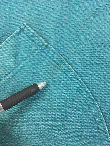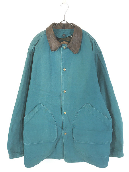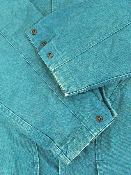 強度のある厚手コットンダック素材・襟本革レザー・インディアン刻印スナップボタン。