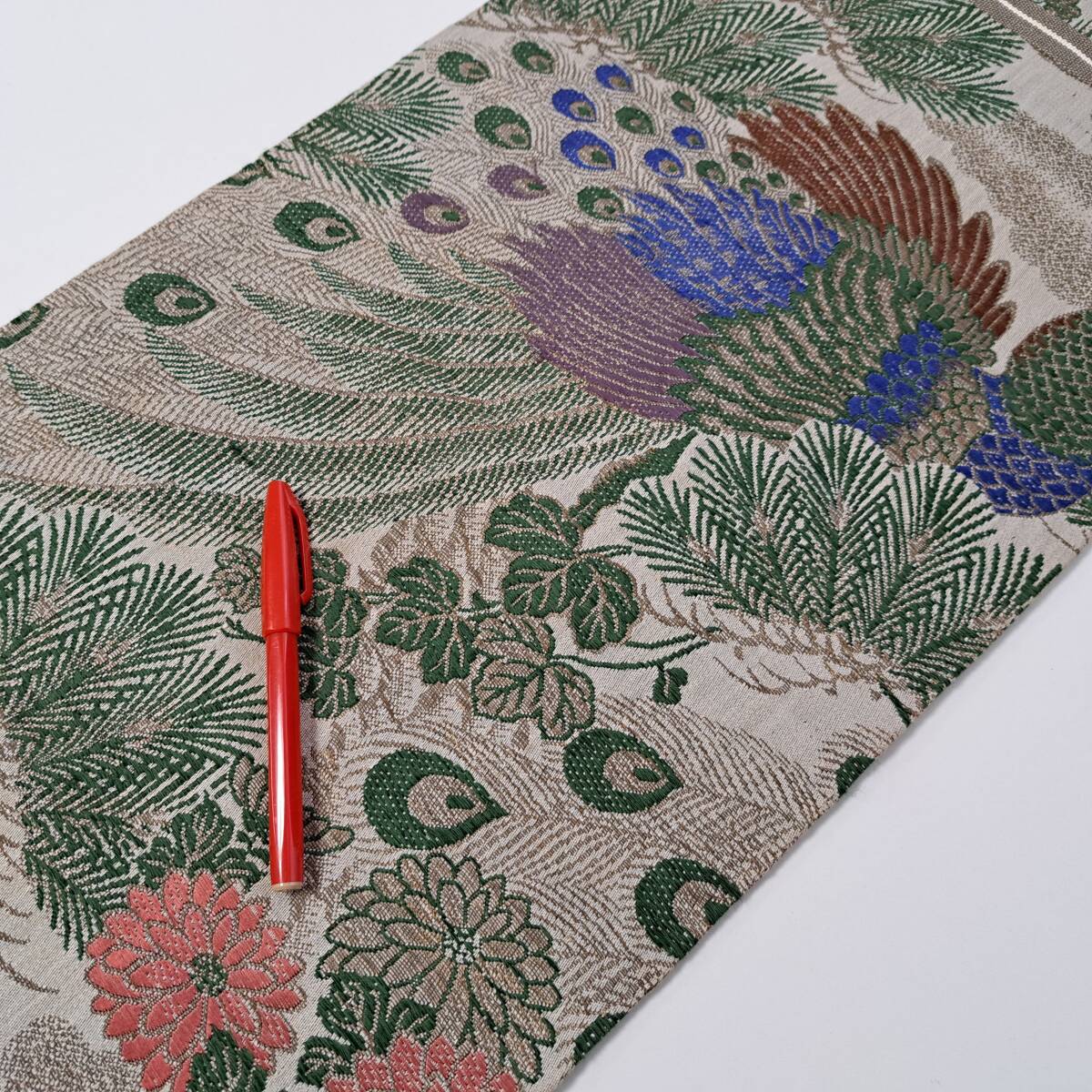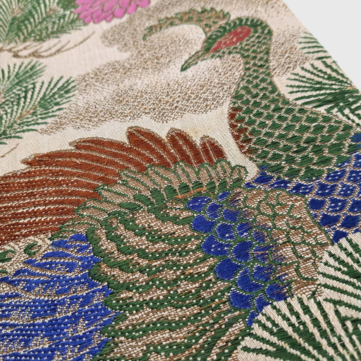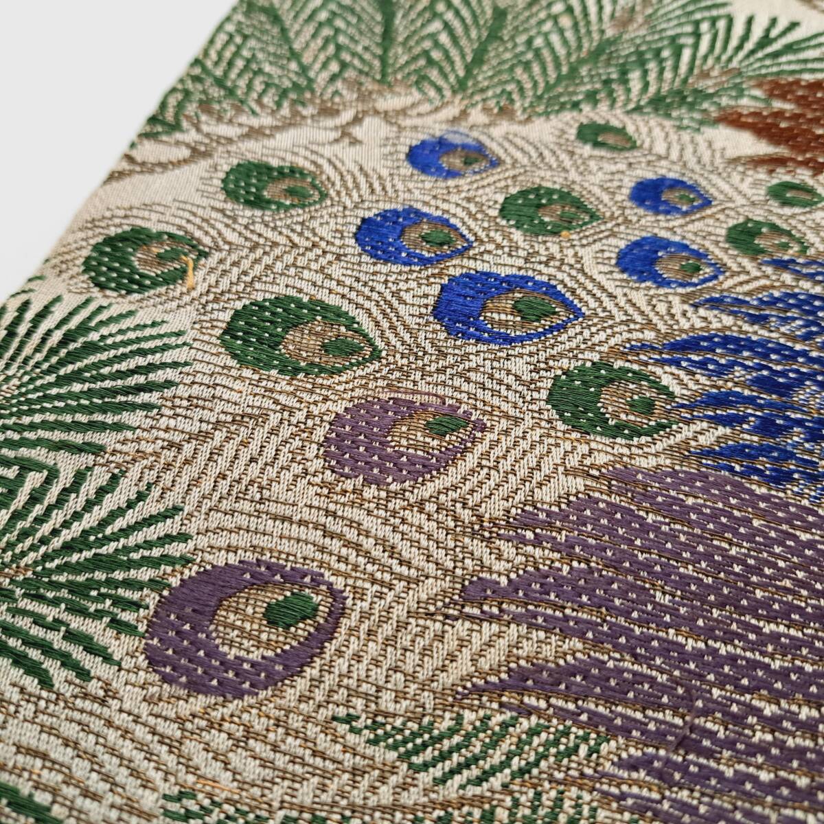 ■着物の越田■幅32長さ372 正絹 丸帯 アンティーク 孔雀 クジャク 菊 引抜き帯 ■む16J03