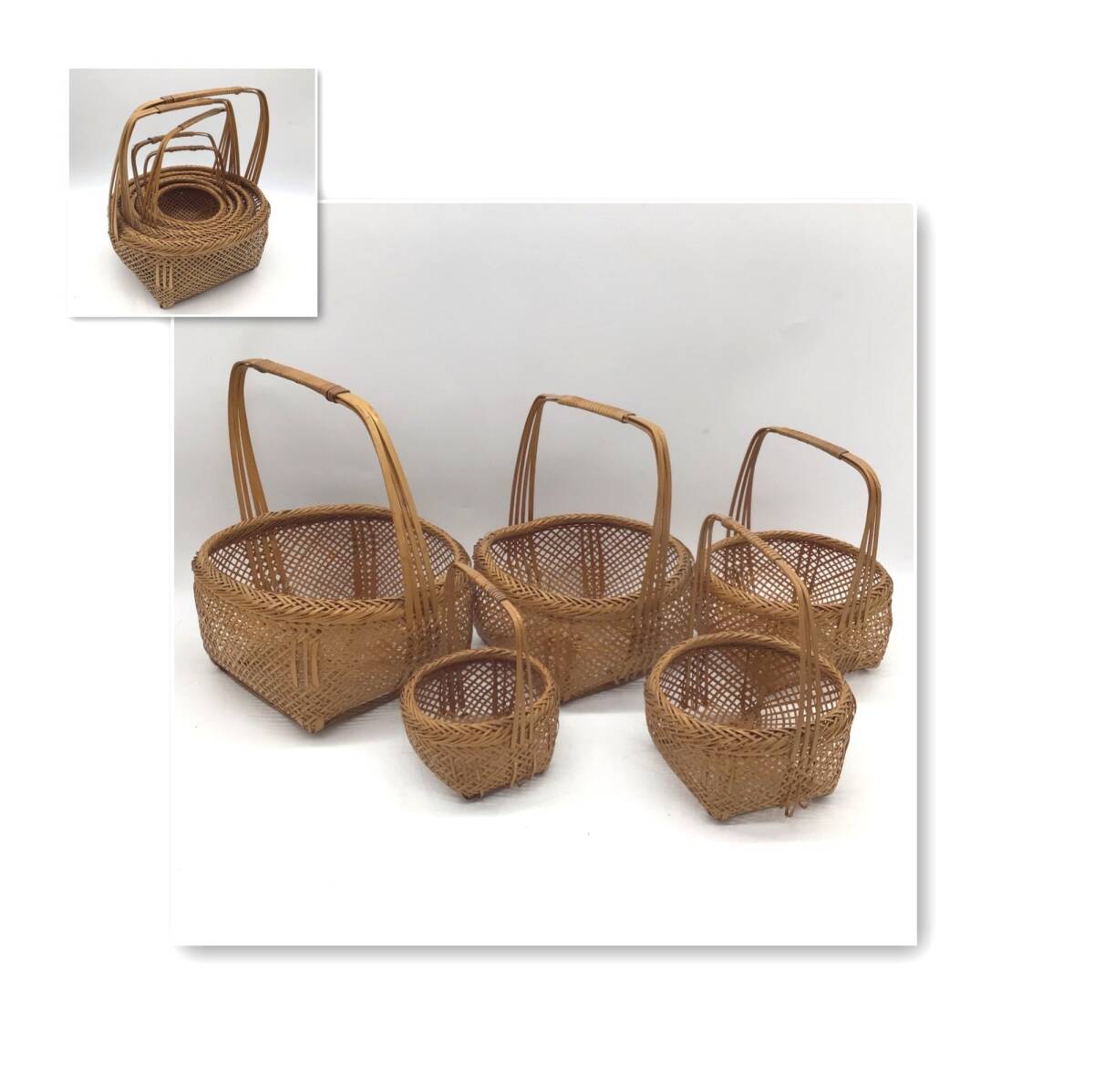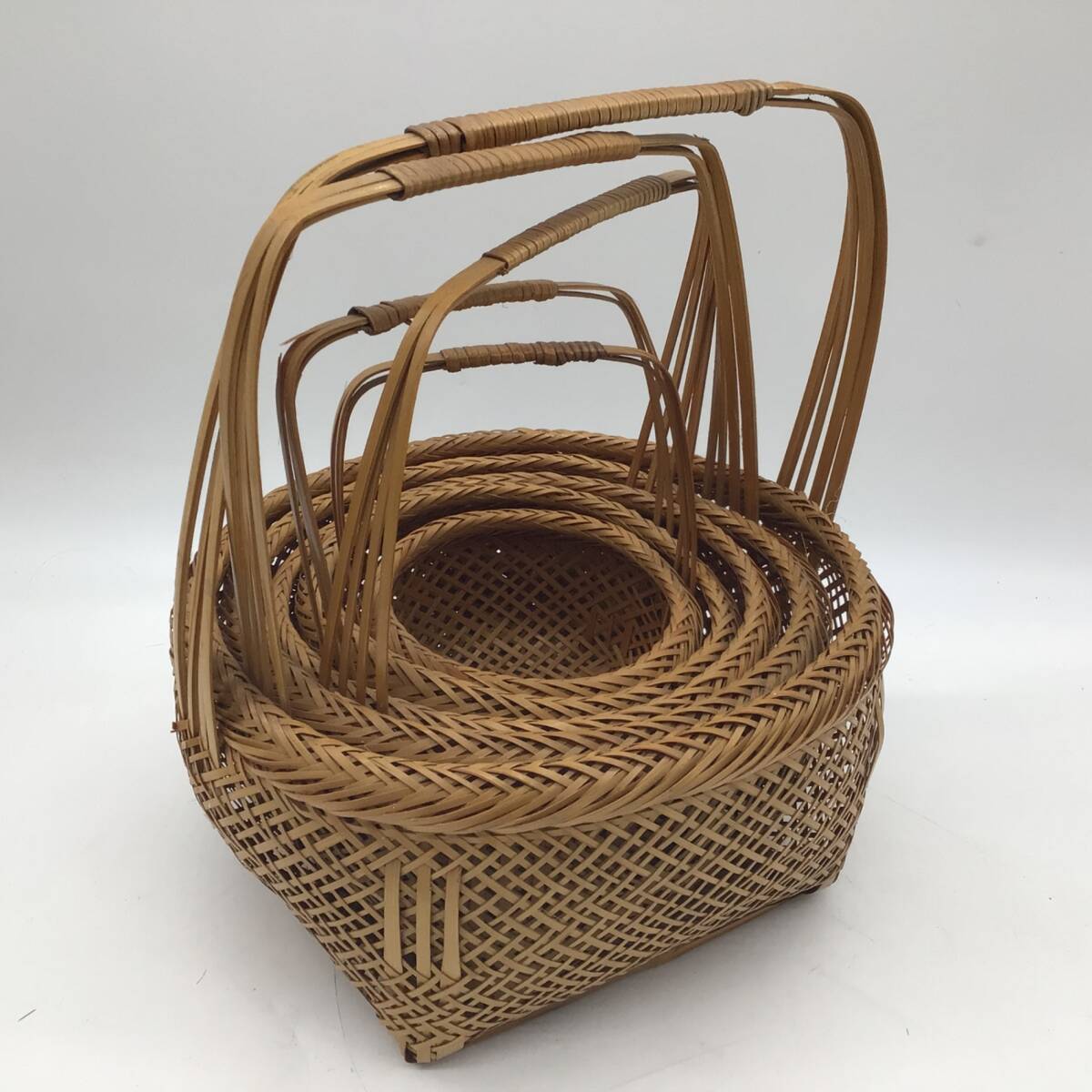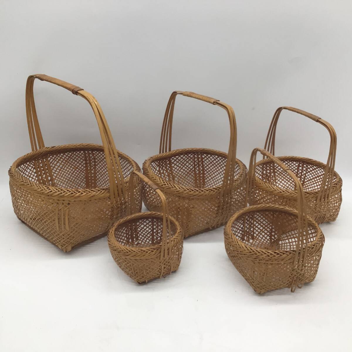 商品説明 | ・持ち手付き 竹かご 5個セット バスケット 収納 小物入れ 古民具 竹籠 籠 カゴ インテリア 竹細工。 ・昭和レトロなお品物です。 ・保管によるお品物のやけが見られます。 ・保管による持ち手のほつれが見られます。3枚目の写真にて確認ください。 ・写真にて状態をご判断ください。 |