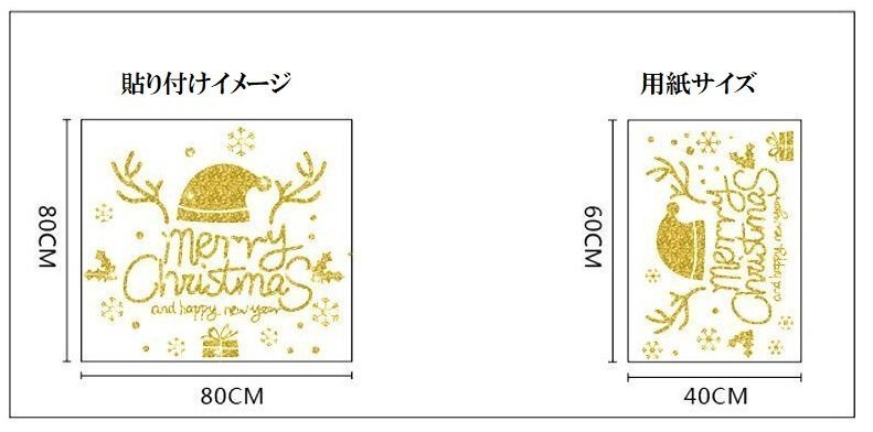 Xmas 黄金 ウォールステッカー 【C808 】 インテリア モダン ガラス 窓 ショーウィンドウ 剥がせるシール