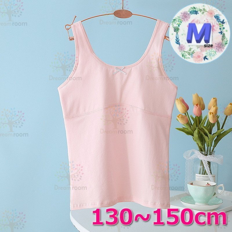 kids 通気性◎ タンクトップ 【M】ピンク 130-150cm 夏 スポーツブラ 子供 ファーストブラジャーインナー K-405-09