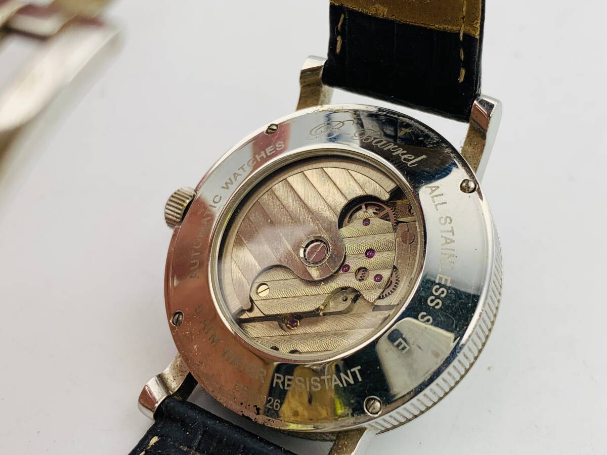 オークションの閲覧ありがとうございます! ◆商品状態◆ 【J】動作未確認品やジャンクランク 当方自身が使用していたものではなく、貰い物になります。 自動巻です。 ベルト部分の金具が外れておりますので、その点ご了承の上でご入札ください。 素人宅での保管品となりますので、外装や金具部分に小傷やスレ、汚れ、経年による劣化があるかもしれません。 あくまで中古品としてご理解いただいた上でご入札をお願いいたします。 ノークレームノーリターンでお願いします。 神経質な方や完璧を求める方のご入札はお控えください。 詳しくは写真にてご確認いただけますようにお願いいたします。 ◆サイズ(約)◆ 文字盤:横 約4cm × 縦 約4cm ベルト全長:約22cm ※素人採寸のため、多少の誤差はご容赦ください。 ◆動作確認◆ 稼働は確認済です。 ただし、全ての機能を隅々まで確認しているわけではございませんので、現状品としての出品となります。 ご了承の上でのご入札をお願いいたします。 ※私独自目線でのランク程度表です。大体の目安としてお考えください。 【未使用】素人宅保管の使用をしていない状態の商品。(一度は消費者の手に渡っています) 【S】新品同様に近い状態。ほとんど使用感がなく綺麗な商品 【A】使用頻度の低い商品(細かい傷、汚れなどが少なめ) 【B】日常的に使用していた商品(細かい傷、汚れなどがある) 【C】使い込まれた商品(傷や使用感が目立つ) 【J】動作未確認品やジャンク品など動作保証はありません |