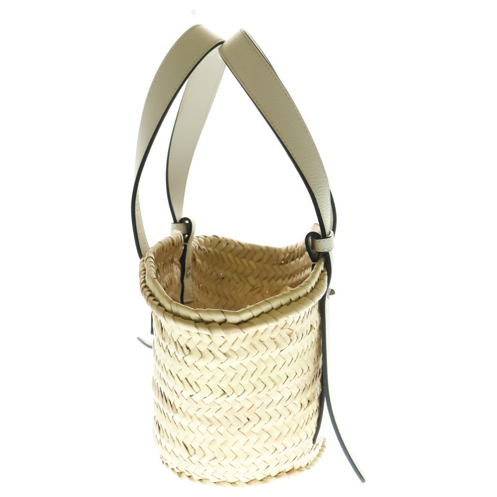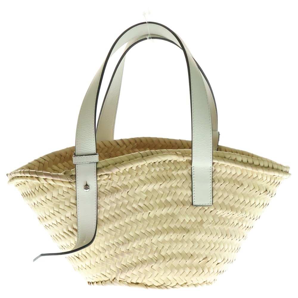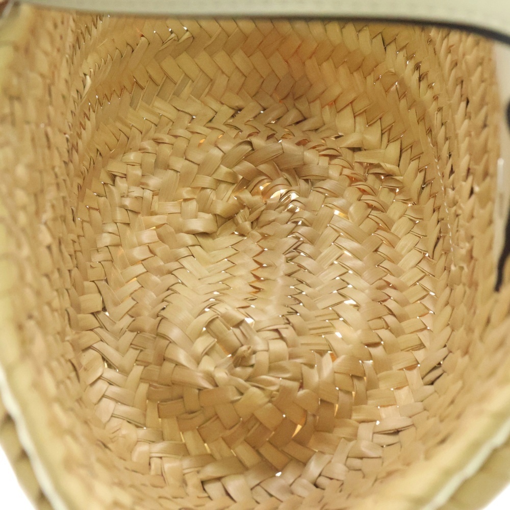 LOEWE ロエベ かごバッグ アナグラム ハンドバッグ ミニトートバッグ ベージュ×ホワイト ラフィア シルバー金具