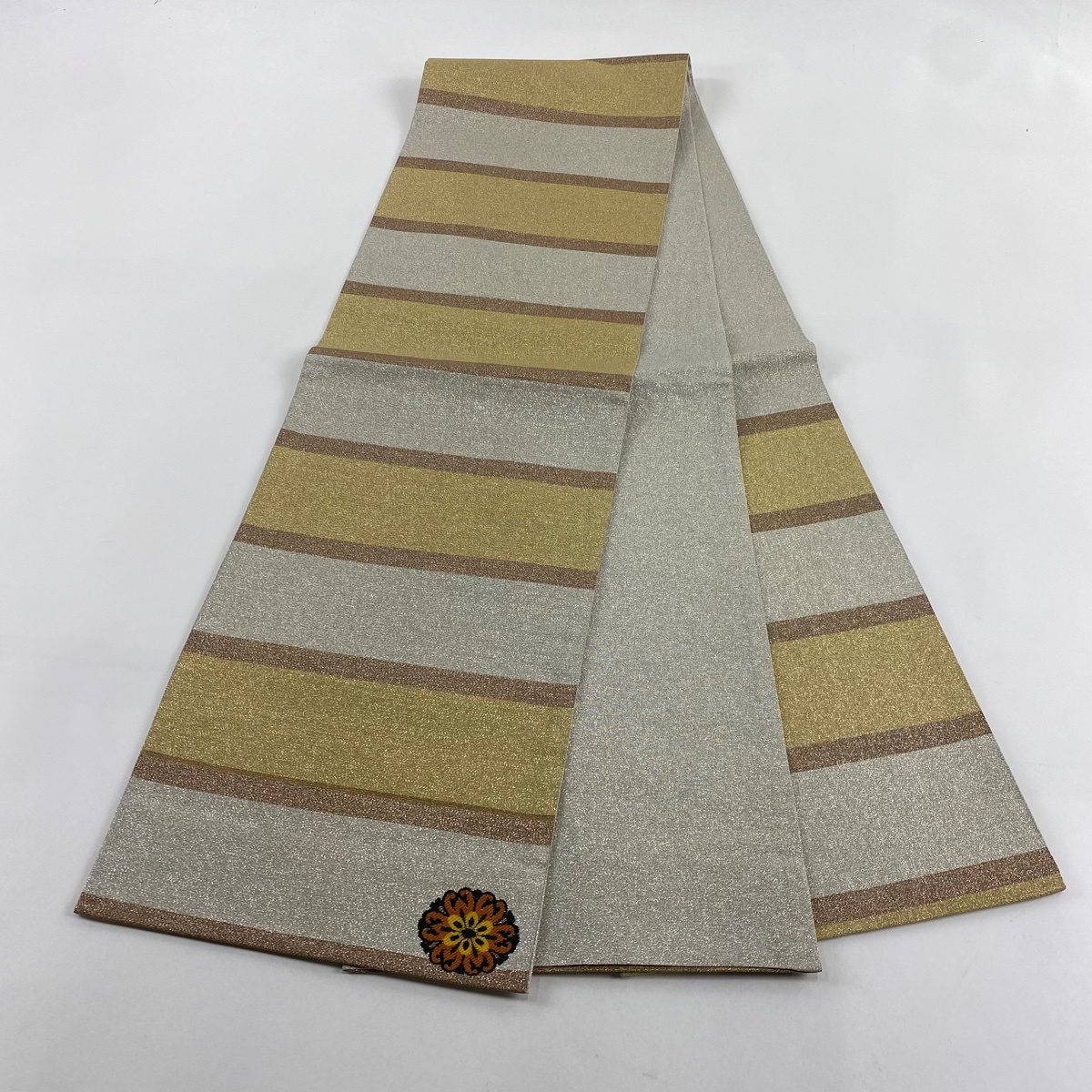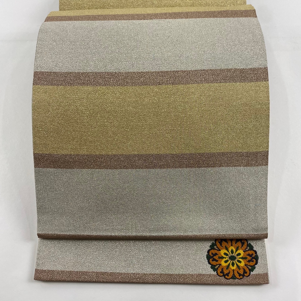 | 袋帯 美品 秀品 縞 金糸 銀色 六通 正絹 【中古】 |