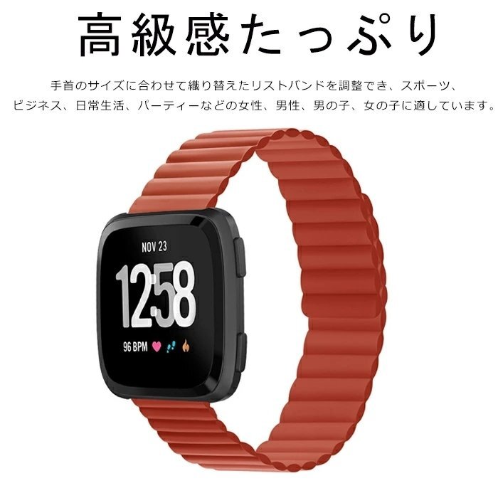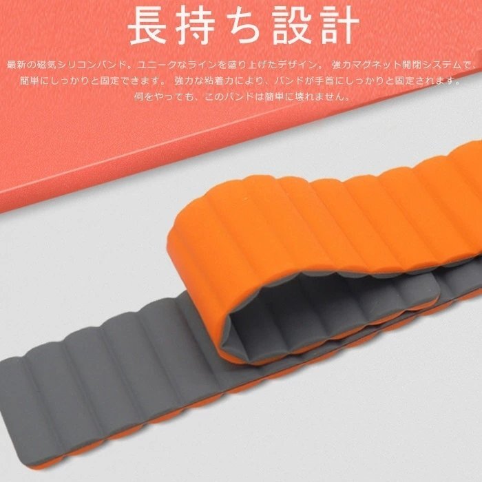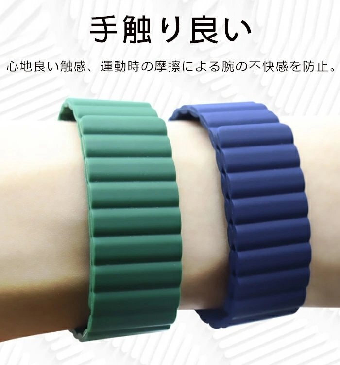 【長持ち設計】最新の磁気シリコンバンド。ユニークなラインを盛り上げたデザイン。 強力マグネット開閉システムで、簡単にしっかりと固定できます。 強力な粘着力により、バンドが手首にしっかりと固定されます。 何をやっても、このバンドは簡単に壊れません。