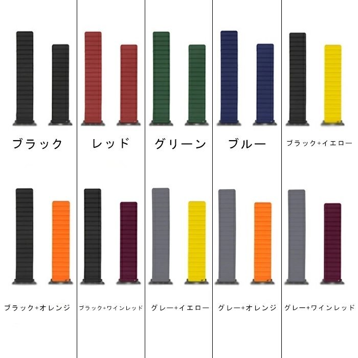 カラー:ブラック、レッド、グリーン、ブルー、ブラック+イエロー、ブラック+オレンジ、ブラック+ワインレッド、グレー+イエロー、グレー+オレンジ、グレー+ワインレッド