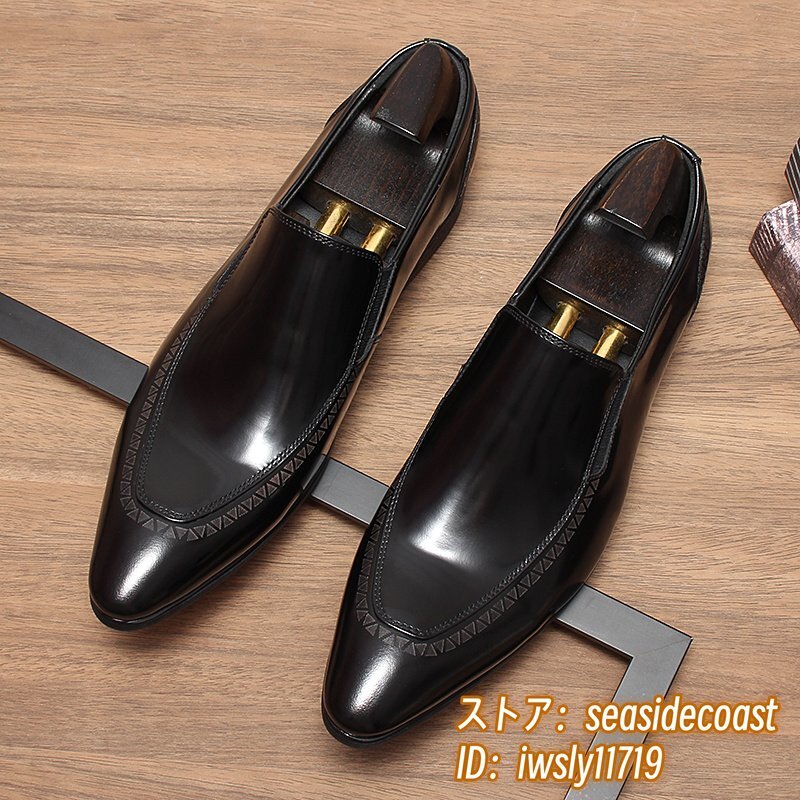 最高級★ビジネスシューズ イギリス風 職人手作り ローファー スリッポン メンズ 革靴 本革 レザーシューズ 紳士靴 超希少 ブラック 27.0cm