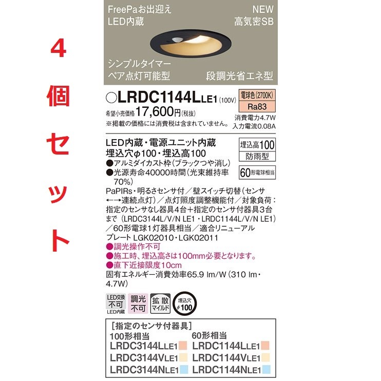 全国最安【新品】4個セット パナソニック LRDC1144L LE1 天井埋込型 エクステリア ダウンライト 防雨型・FreePaお出迎え