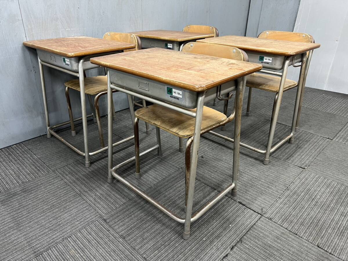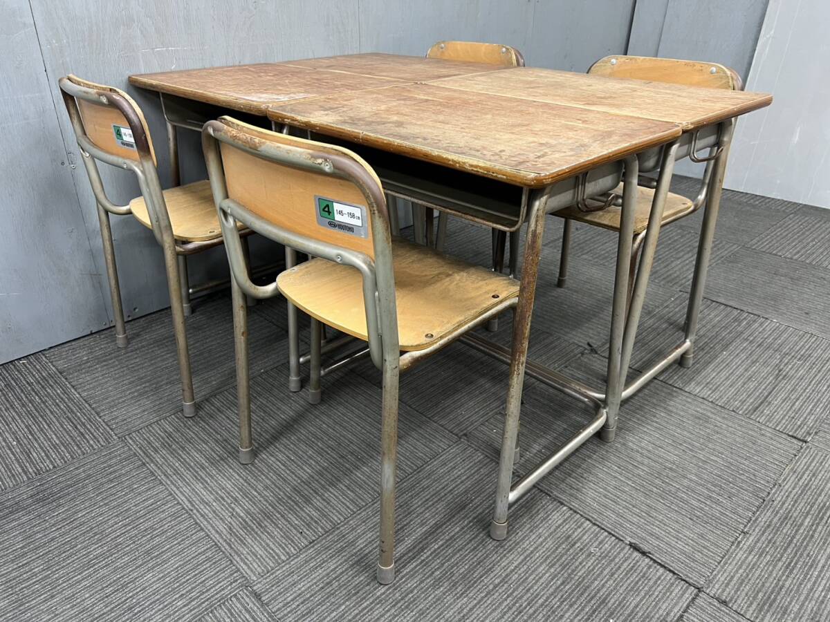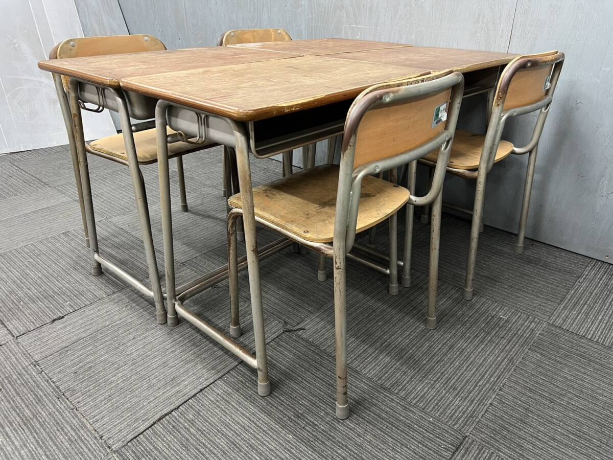 ◆管441◆自社便対応地域あり◆ホウトク製◆学童机4台 学童椅子4脚◆4組セット◆JIS規格4号◆学校 学習塾等 中学年