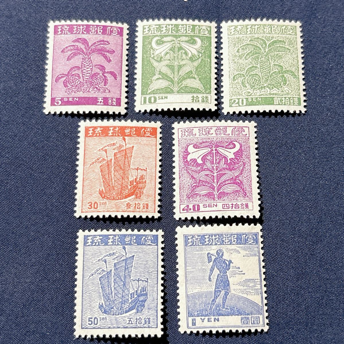 ★1949(昭24)琉球切手 第1次普通切手再販 全7種★NH★美品セット