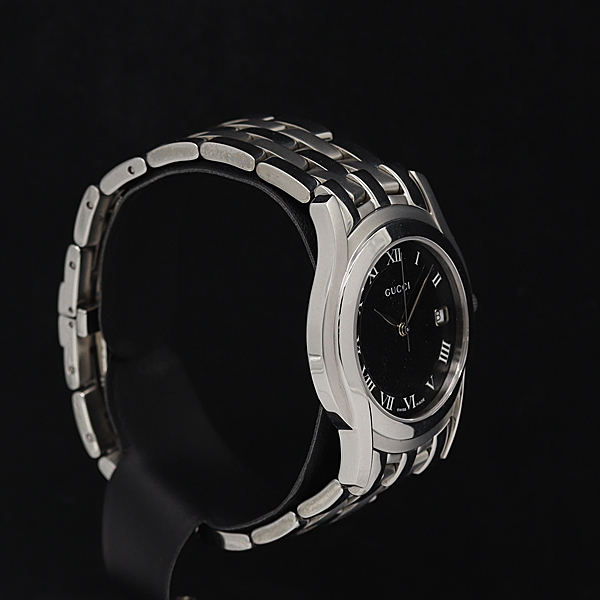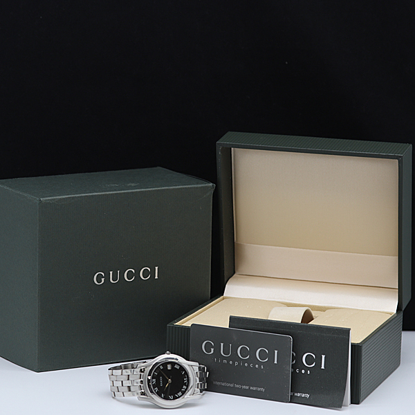 1円 保/箱付 稼働 良品 グッチ 5500M 0085673 QZ ブラック文字盤 ボーイズ/レディース腕時計 0540100 9RET IGR