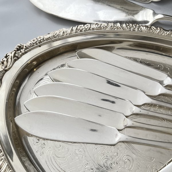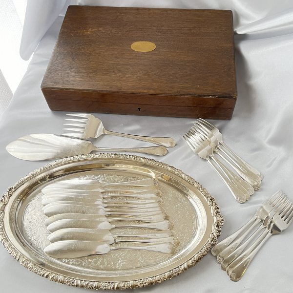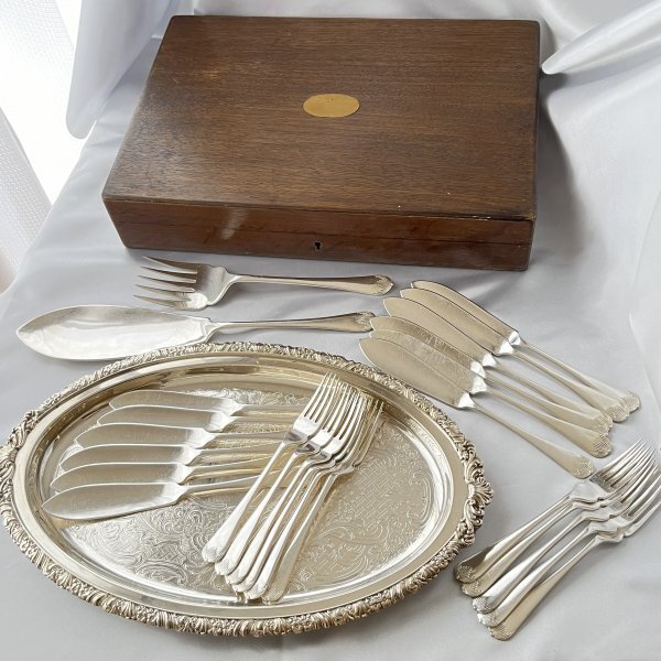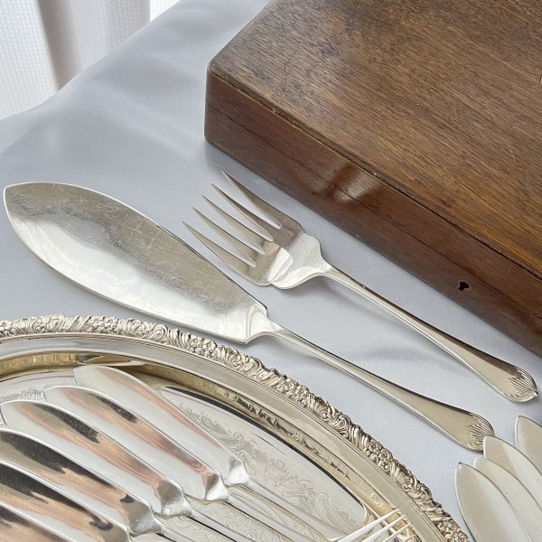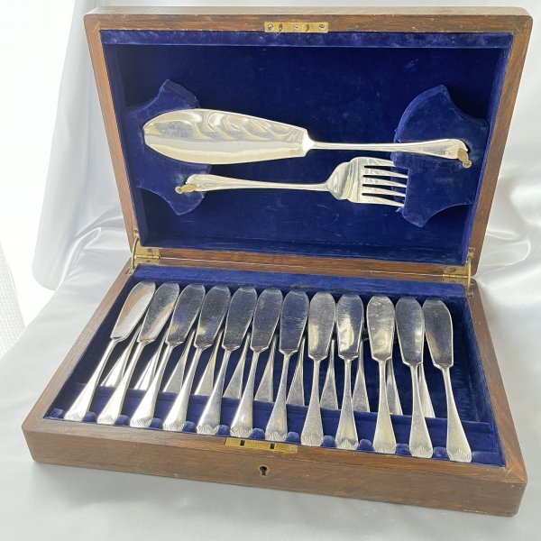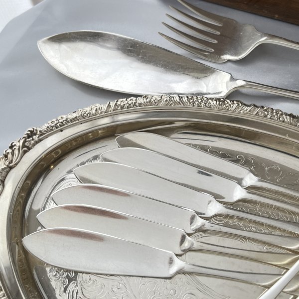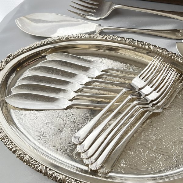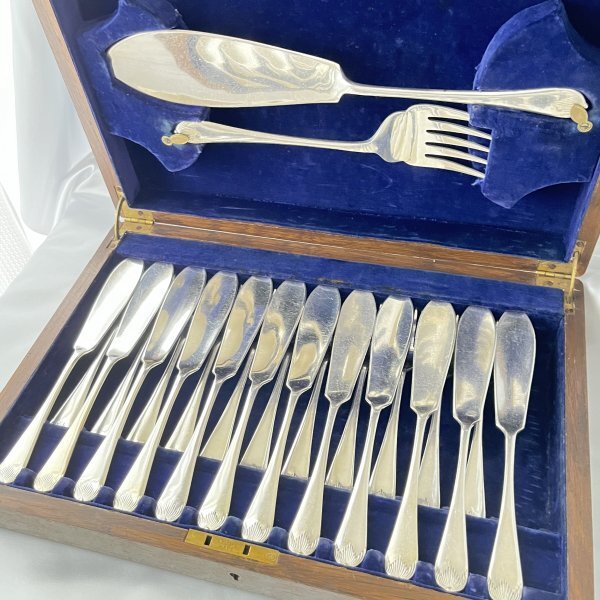 英国製、フッシュナイフ/フォークセット23本に専用サーバー1組2本が付属したセットです。