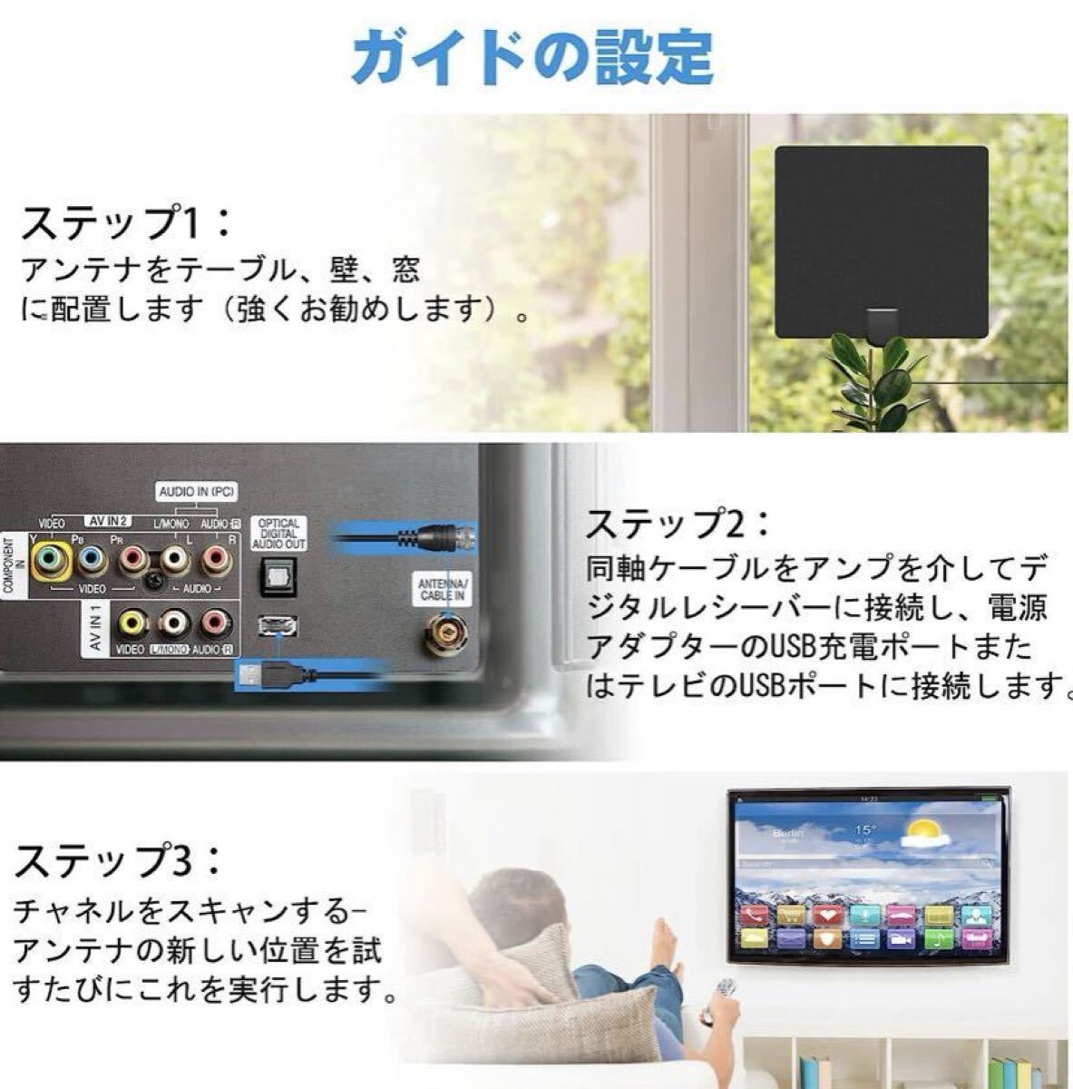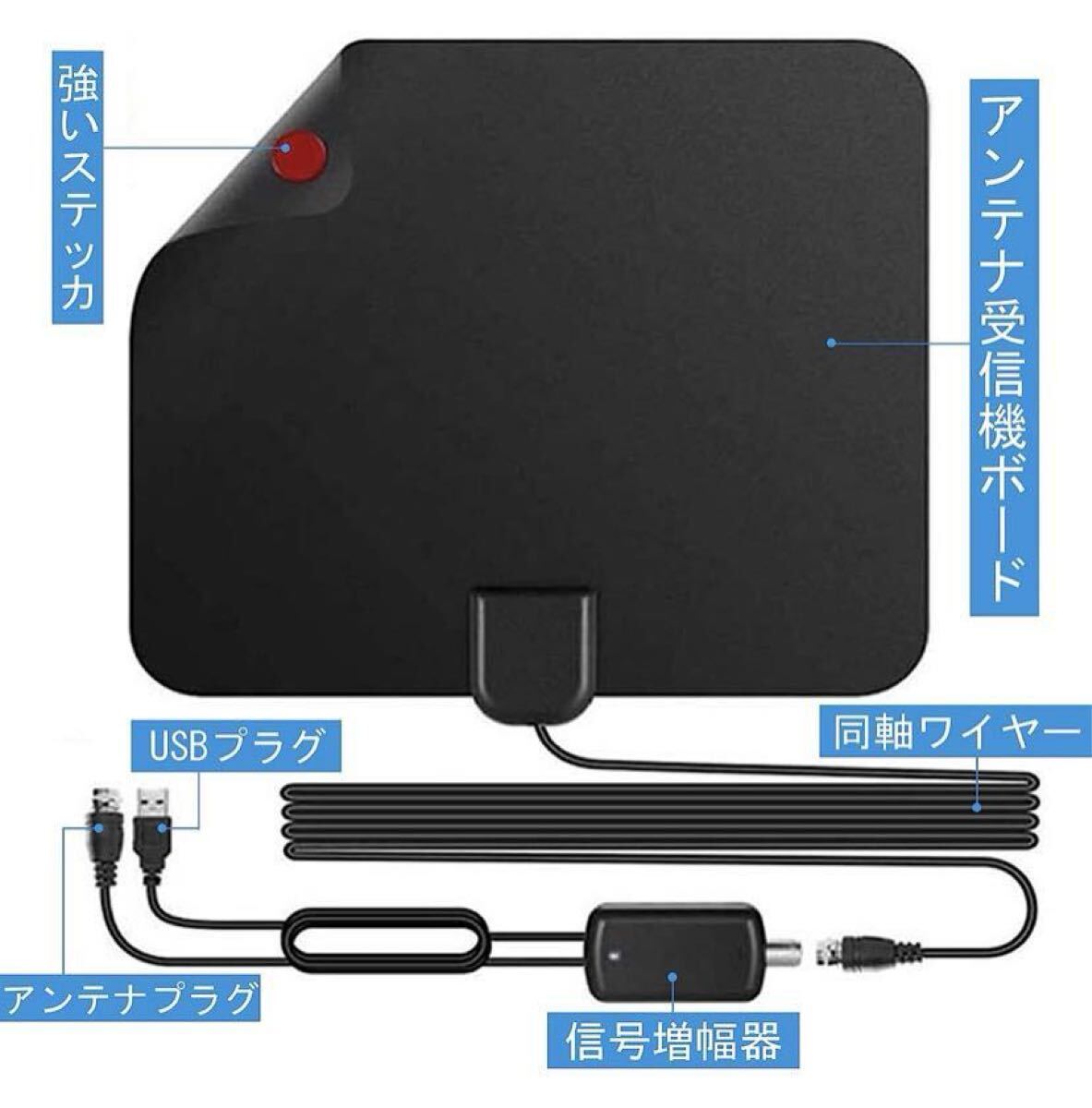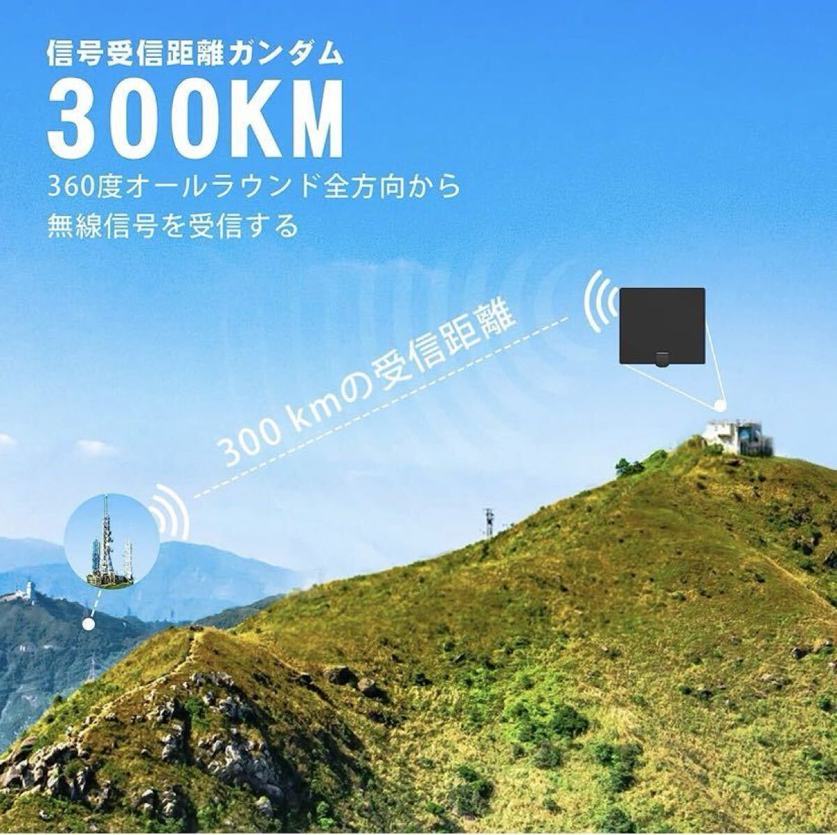 テレビアンテナ 室内アンテナ フラットデザインは薄くて軽量です300KM受信範囲 360度受信範囲 方向性能が高い 4K HD画質 5Mケーブル USBポートさまざまな数字地面DVB-T,ISDB-T,DMT-T/H,ATSCとDAB/FMRADIOS的HDTV互換性日本語取扱説明書(ブラック)