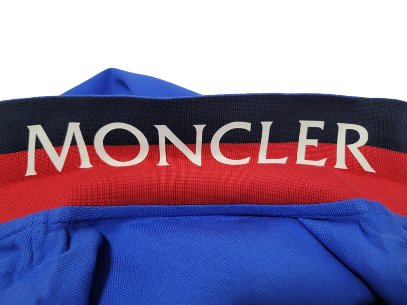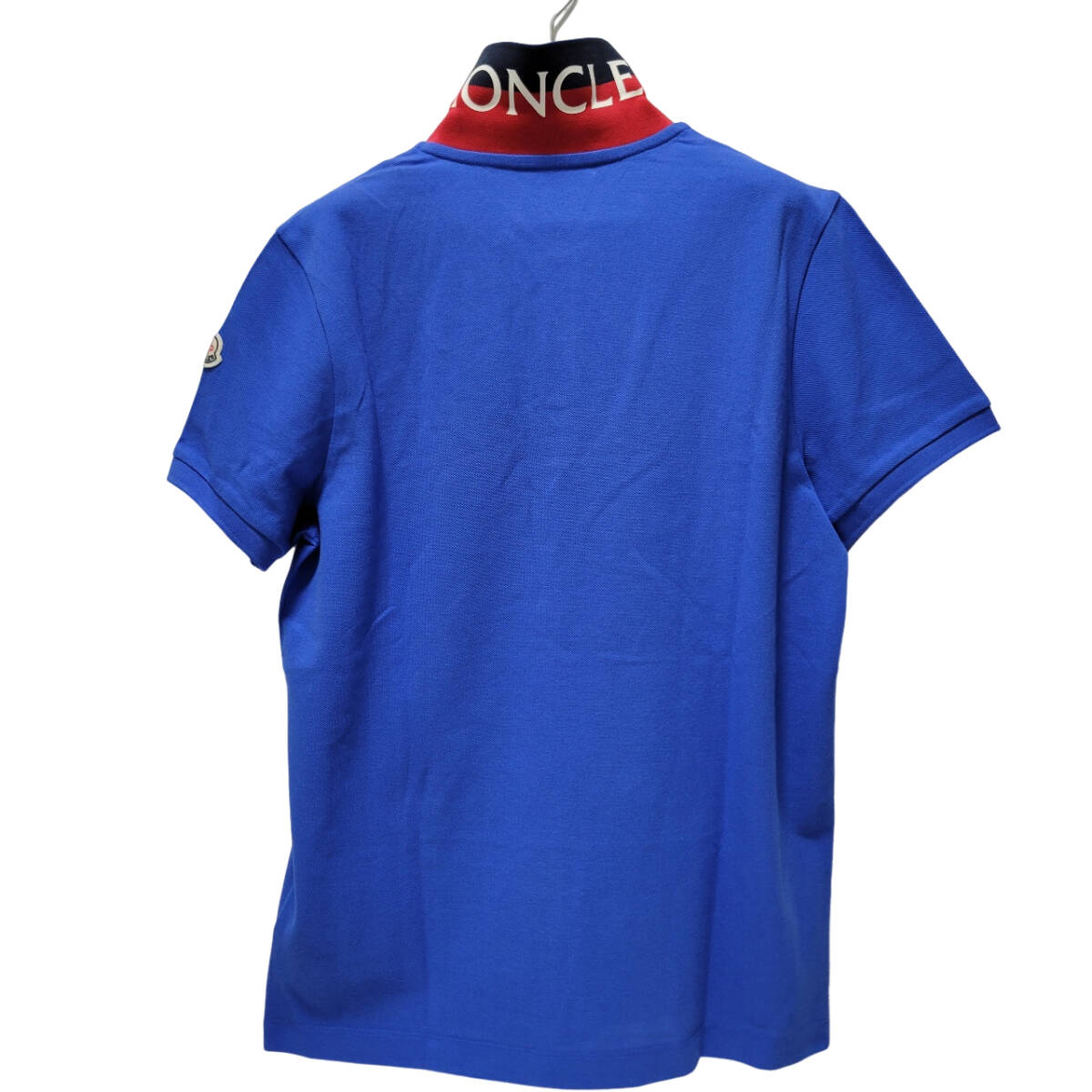 7,5万 新品 本物 モンクレール【襟裏 MONCLERロゴ プリントが目を引く】コットンピケ半袖ポロシャツ Tシャツ メンズ 鹿の子 ロゴワッペン
