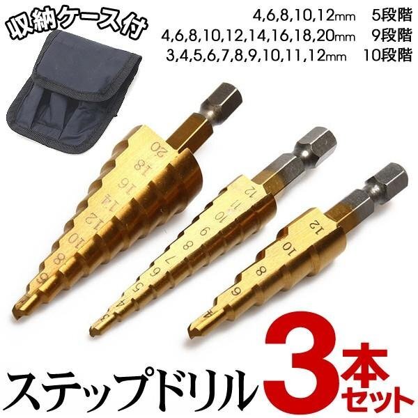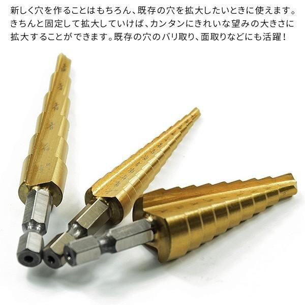 ステップドリル 穴あけ 拡大 タケノコドリル ビット 3本セット 送収納ケース 面取り 時短 作業 工具 DIY 道具 料無料 2M◇ ステップドリル