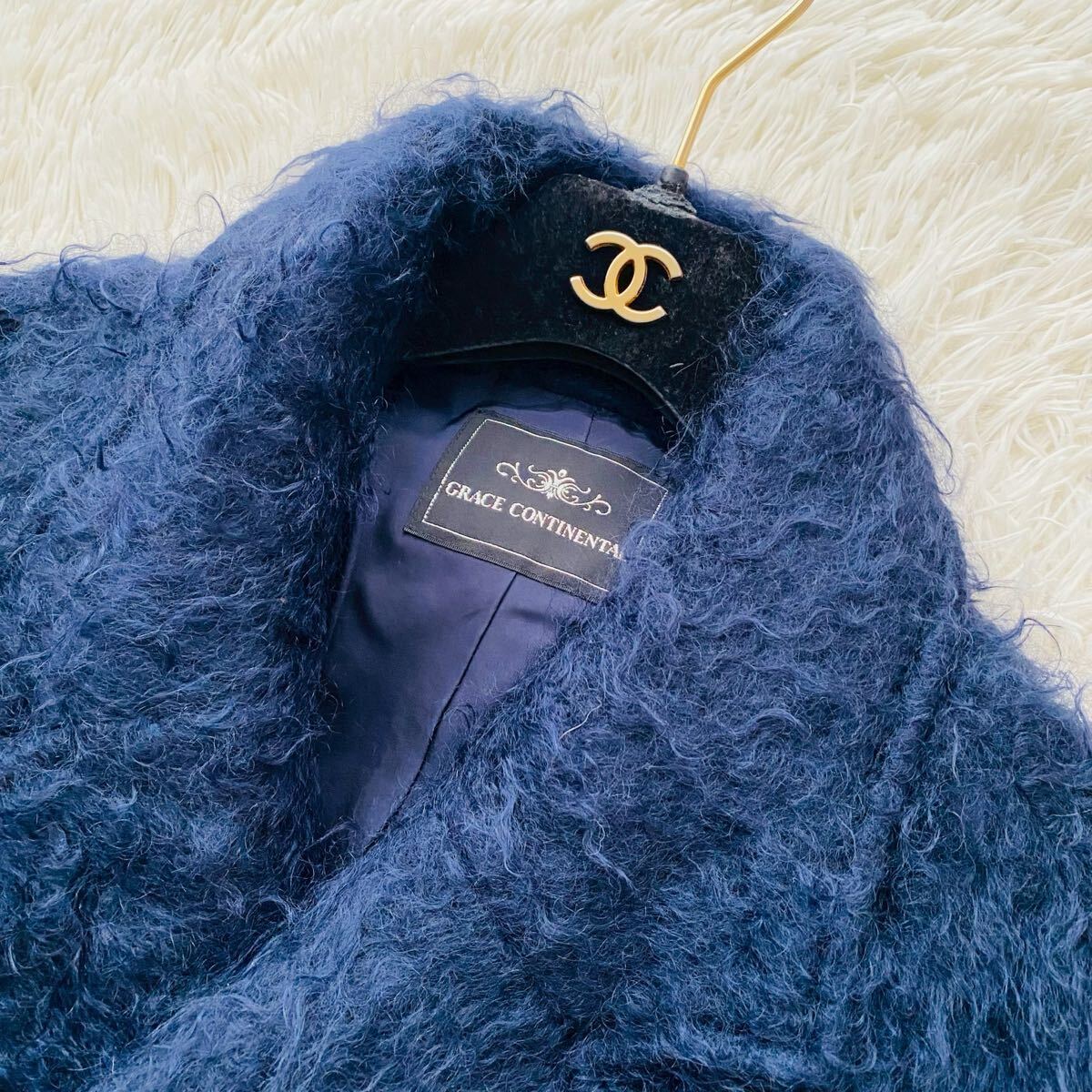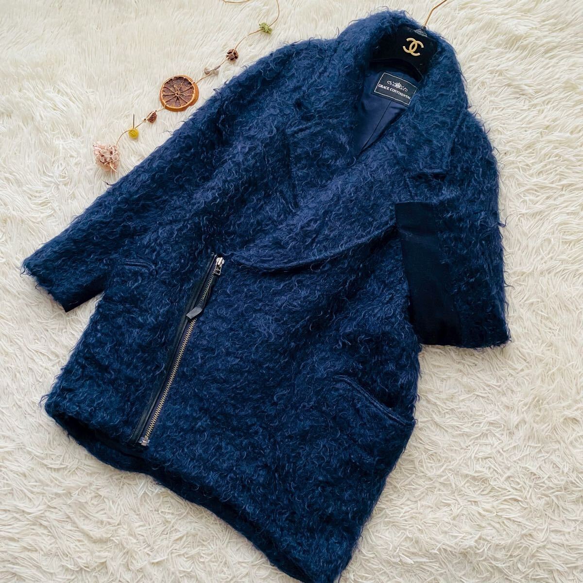 *今年のトレンドカラーの一つである希少なロイヤルブルーモヘヤを使用、GRACE CONTINENTALのロングシャギーコート。あえて毛足のある上質でもこもこのウールモヘヤWシャギーを使い、女性らしい表情に仕上げた一枚。シャギーコートとしては珍しいジップアップ仕様なので軽くラフに羽織れ、今年の冬を華やかに彩ります。