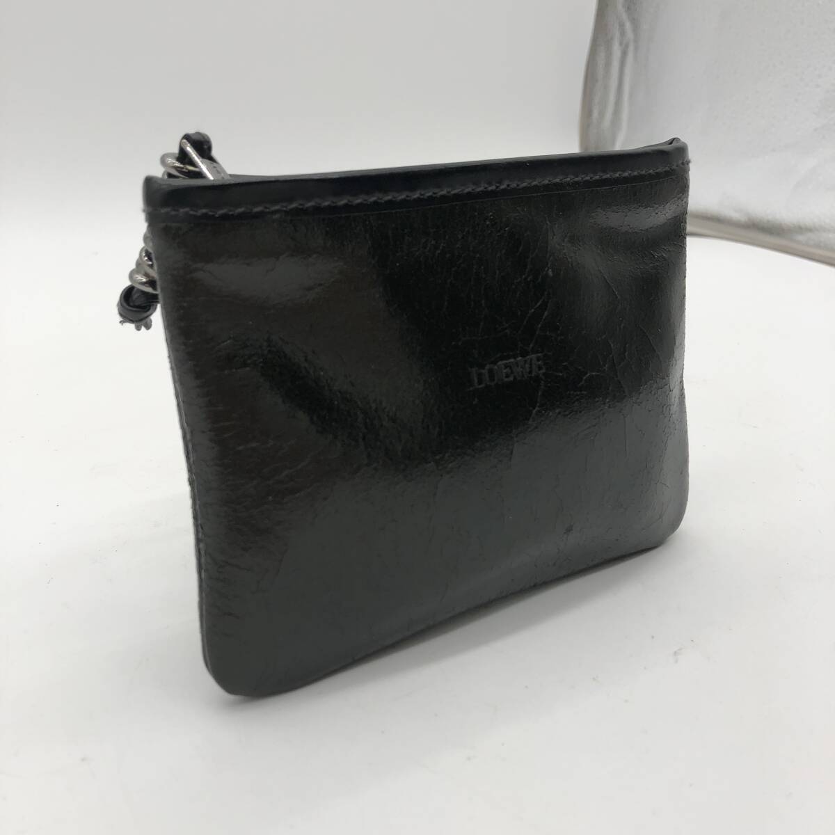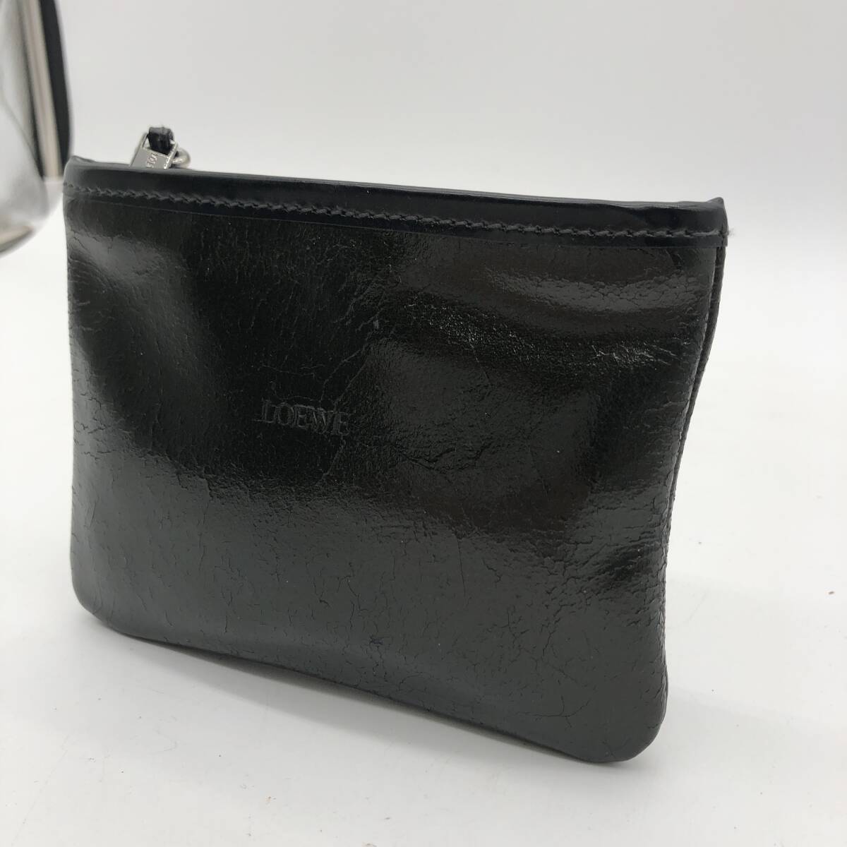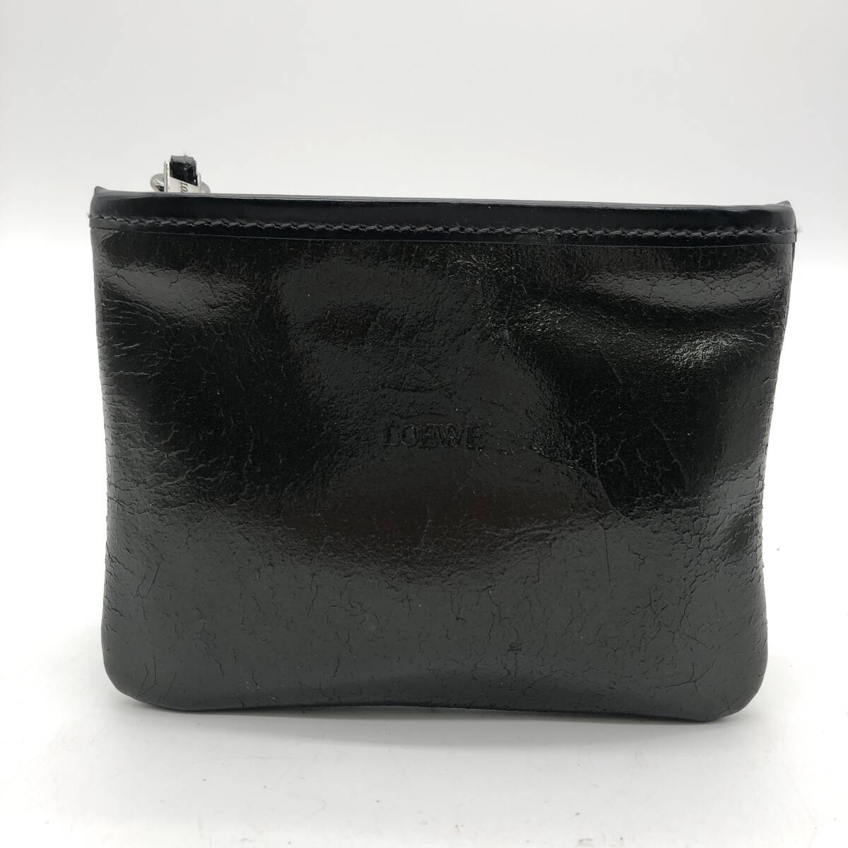 ロエベ ポーチ ブラック 小物入れ マチなし LOEWE ファスナー ヴィンテージ レア 定番 人気 女性 レディース 黒 シンプル お洒落  H