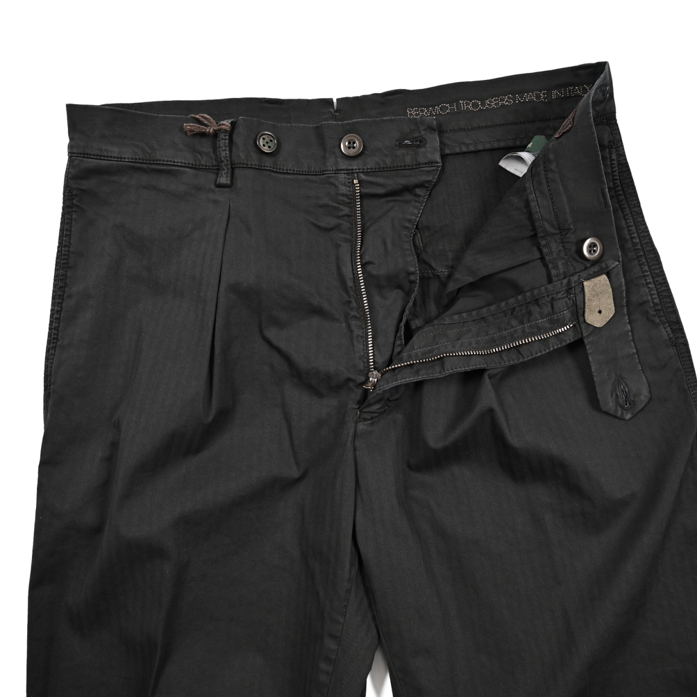 ベルウィッチ BERWICH CHIAIA-GD WIDE FIT スラックス ワンタック ストレッチ パンツ メンズ コットン ヘリンボーン ガーメントダイ ブラック MADE IN ITALY | |
