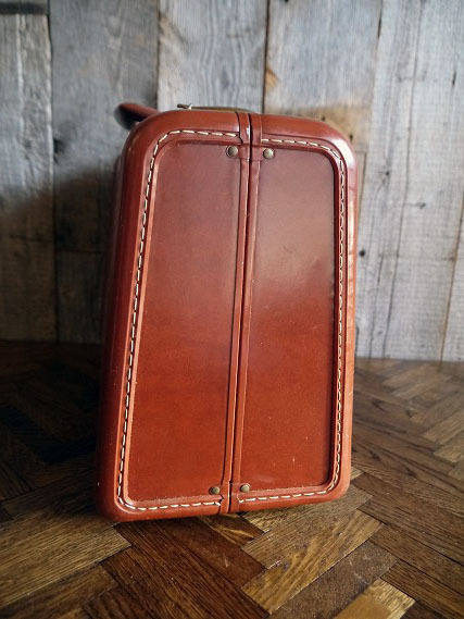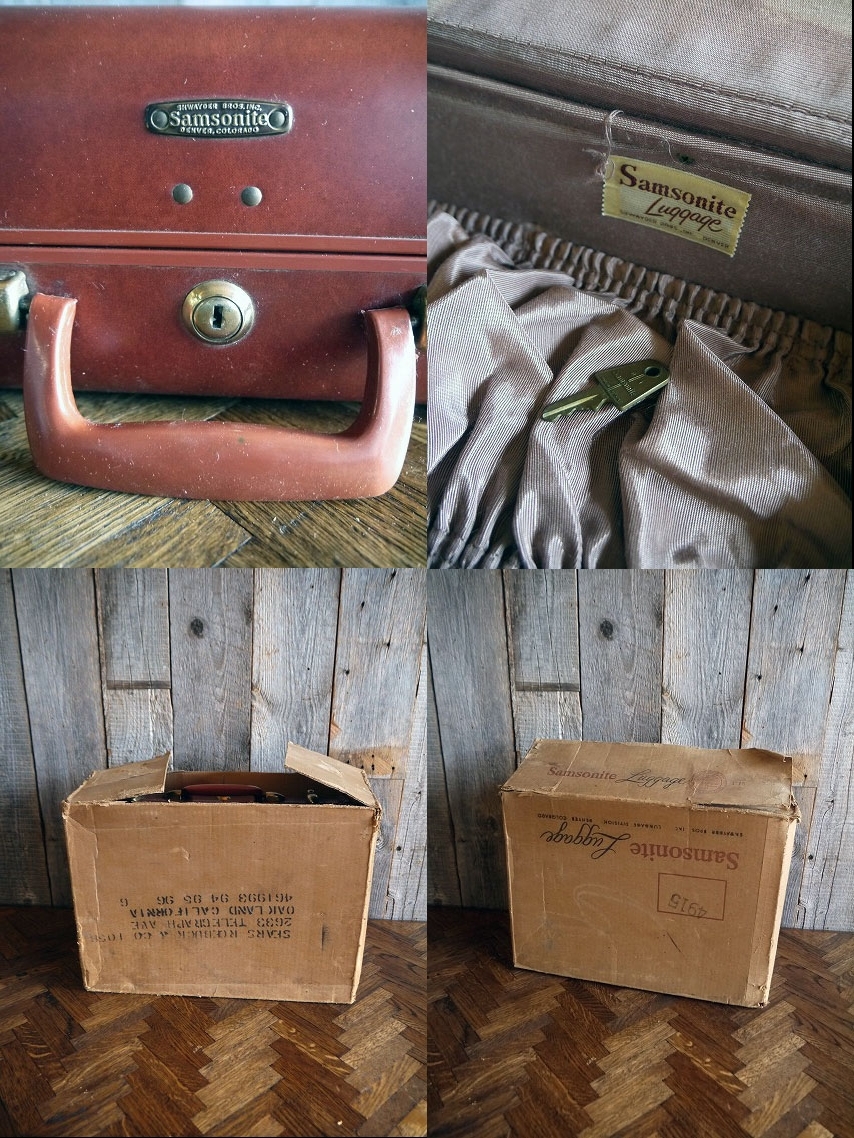商品説明 岡山STAGE GOOD OLDより出品します。アメリカで買い付けてきましたビンテージのSamsonite ミニケースです。綺麗なカラーリング&お馴染みのデザインフォルムとロゴプレートデザインがとてもオシャレです。アメリカにて1910年に創業した老舗スーツケース及びバックメーカーの1950年代頃のモデルになります。オリジナルの箱や鍵付きでのロックは今の所問題ありませんが、画像の様に片側の金具のカシメ金具の欠損で表面の金具が外れないように針金で固定しています。(上側の金具が外れても問題はないのですが見た目が金具剥き出しになります。)小物の収納兼店舗ティスプレイとしてオススメです。状態ですが多少の小傷、擦れ、金具にサビ、金具の針金リペア、外箱にダメージ、内側の生地に染み汚れや多少の香水の匂いなどはございますが実用ディスプレイには問題ない状態です。あくまでアンティークですので理解のある方のご購入をお願いします。 サイズ 高さ約27cm(持ち手はたたんだ状態)、横幅約39cm、奥行き約cmです。 発送方法 保障の利く佐川急便の元払い100cmサイズ料金で発送します。 コメント 店頭にも出しています。タッチの差で売れた場合はご了承下さい。■落札後の連絡及びご質問の返答は基本的に午前10時~午後6時までとさせて頂きます。毎週水、木曜日、年末年始や時間外でのご連絡は休み明け及び翌日のご連絡となりますので予めご了承下さい。 STAGEホームページ https://www.good-oldstage.com/ |