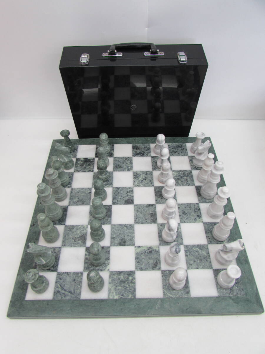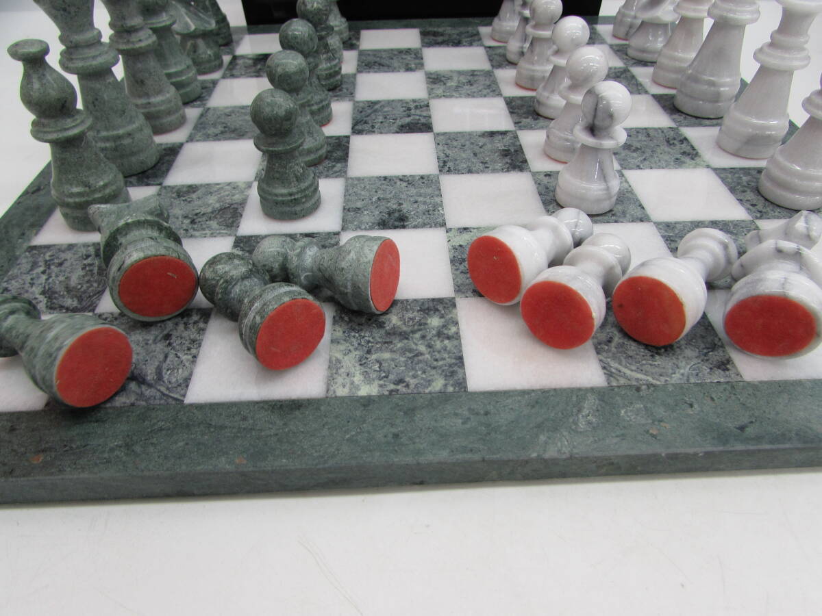 | 大型 チェス 大理石 グリーン×ホワイト マーブル 駒 チェス盤 約45×45㎝ ボードゲーム インテリア 【引き取り歓迎 札幌】 |