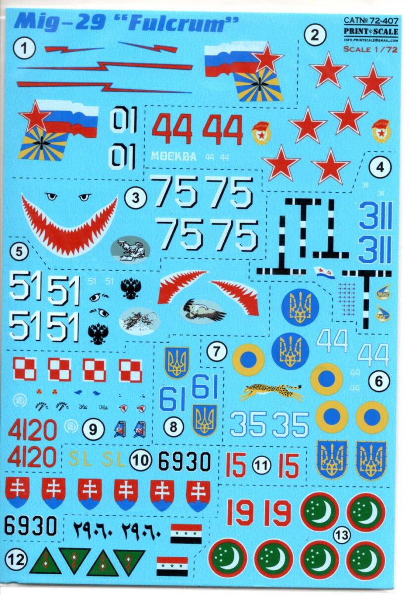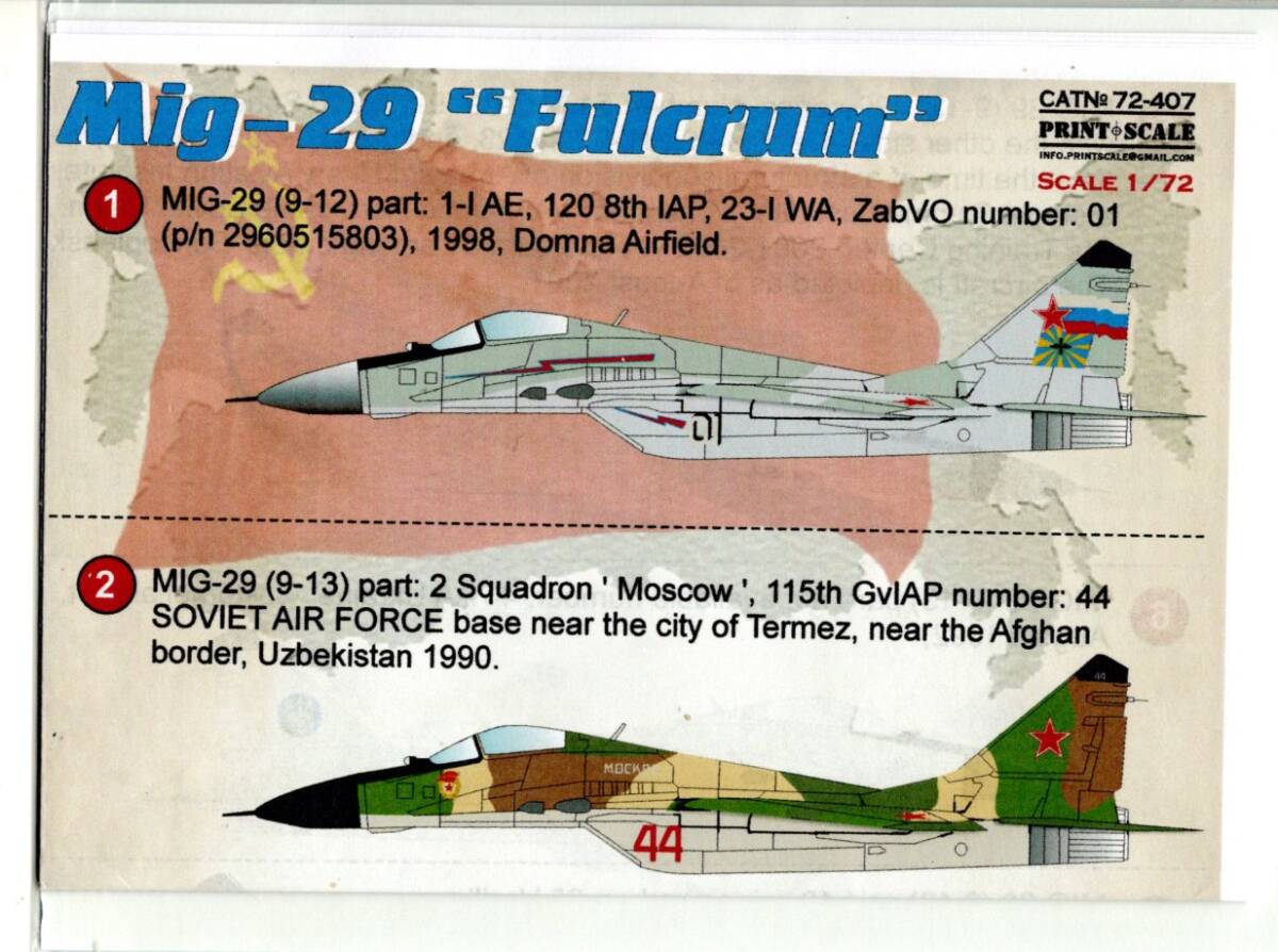1/72プリントスケールデカール 72-407 MiG 29 Fulcrum  の新品になります
