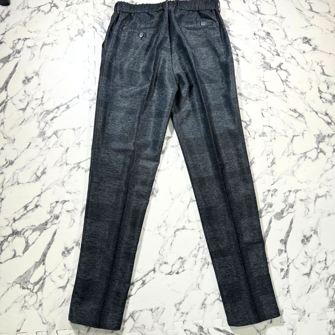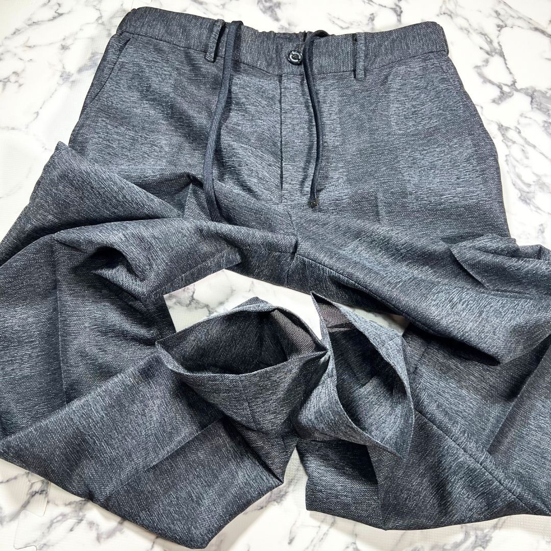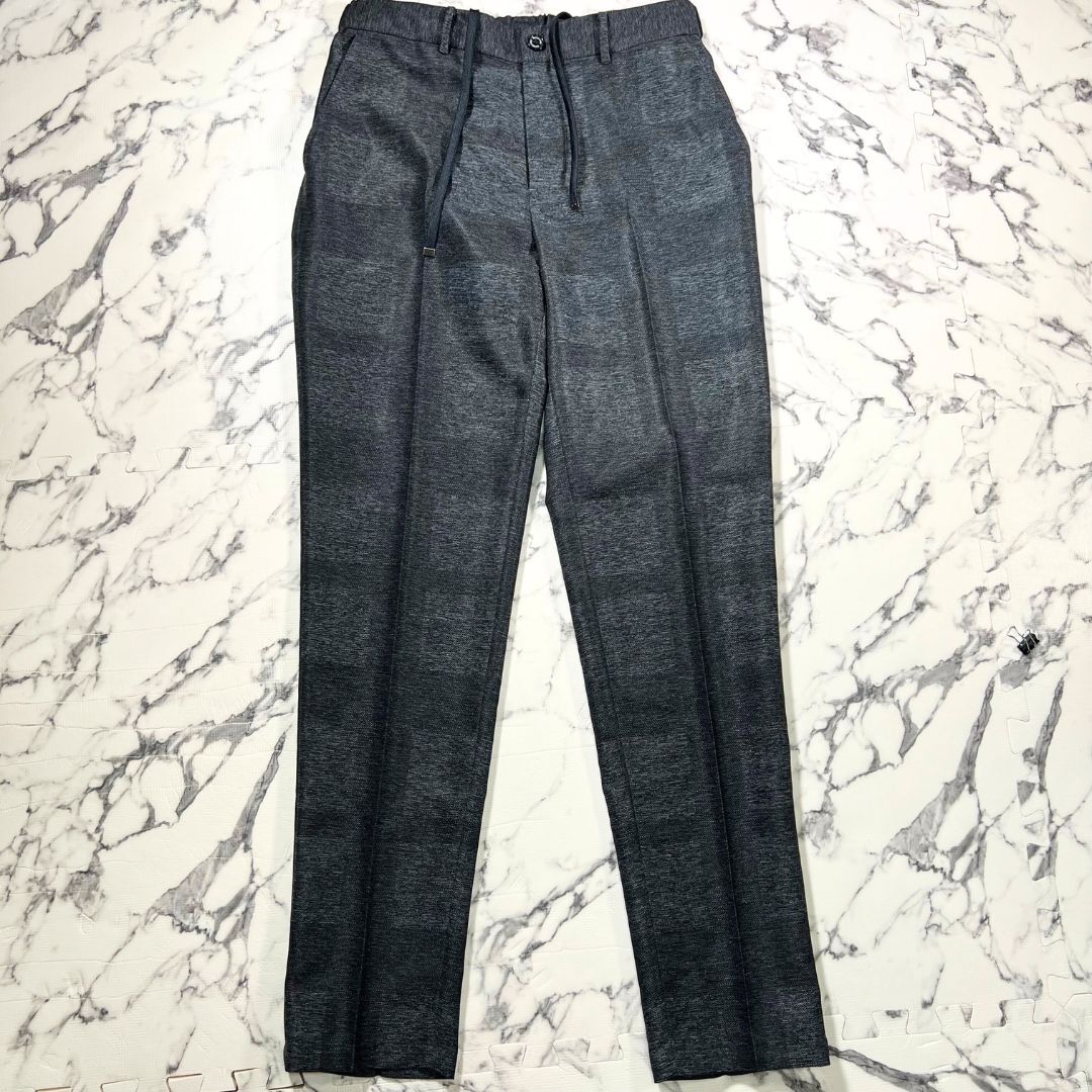 クレストブリッジ ブラックレーベルの未使用級スラックス。薄手のメッシュ素材を採用し、通気性と軽量感に優れた仕立てで、春夏や室内でのビジネスシーンに最適です。グレーを基調としたチェック柄が上品で落ち着いた印象を与え、さりげない柄感がコーディネートのアクセントになります。シルエットはLサイズ相当で、程よくゆとりがありながらもだらしなくならず、スマートな着こなしを演出。ドローコード付き・ウエストやヒップ周りのカッティングも丁寧に設計されており、座ったときや歩行時にも快適なフィット感を保ちます。動きやすさも兼ね備え、長時間の着用でもストレスを感じにくい仕様です。シンプルなジャケットやシャツとの相性はもちろん、薄手のニットやポロシャツとも合わせやすく、オフィスカジュアルからフォーマル寄りのビジネススタイルまで幅広く活躍。ブラックレーベルならではの上品さと現代的な軽やかさが融合したデザインで、季節を問わずスマートに履きこなせるおすすめの一着です。