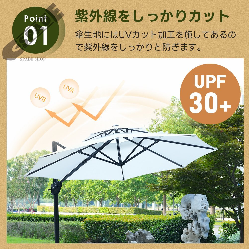 • 【紫外線をしっかりカット 】傘生地にはUVカット加工を施してあるので紫外線をしっかりと防ぎます。UPF30+ 急な雨でもしっかりと水を弾く安心の撥水加工 お庭やバルコニーでのひとときを、どんな天候でも楽しむことができます。※完全防水ではありません。