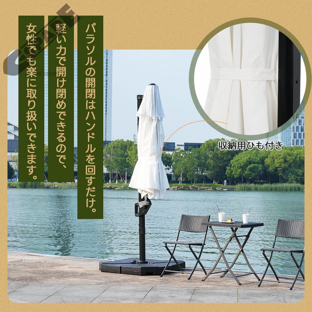 • 【簡単に開閉可能】使わないときは手回しハンドルを回すだけで開閉できます。パラソルの開閉はハンドルを回すだけ。軽い力で開け閉めできるので、女性でも楽に取り扱いできます。収納用ひも付き