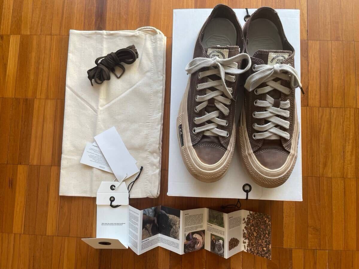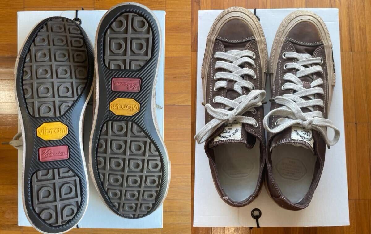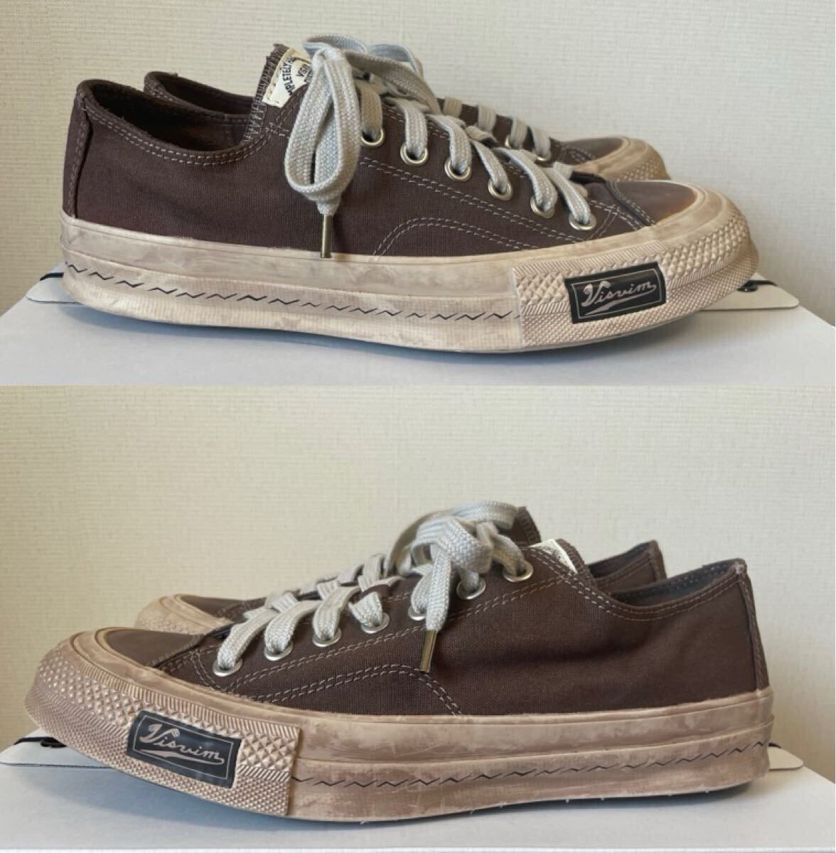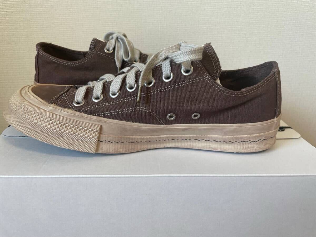 ブランドのシグネチャースニーカー“SKAGWAY”に、鹿児島県奄美大島で古くから受け継がれる天然染色「泥染め」よるガーメントダイとダメージ加工を施しています。