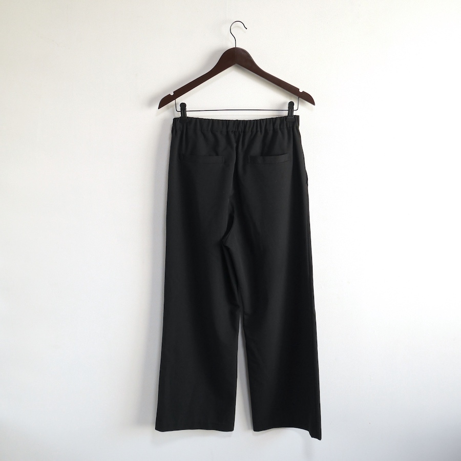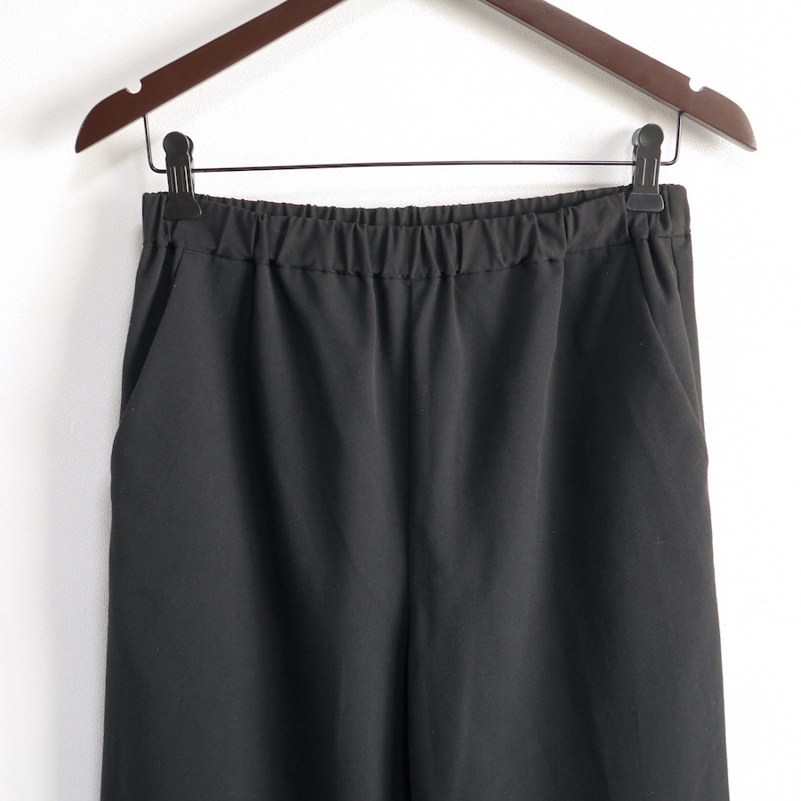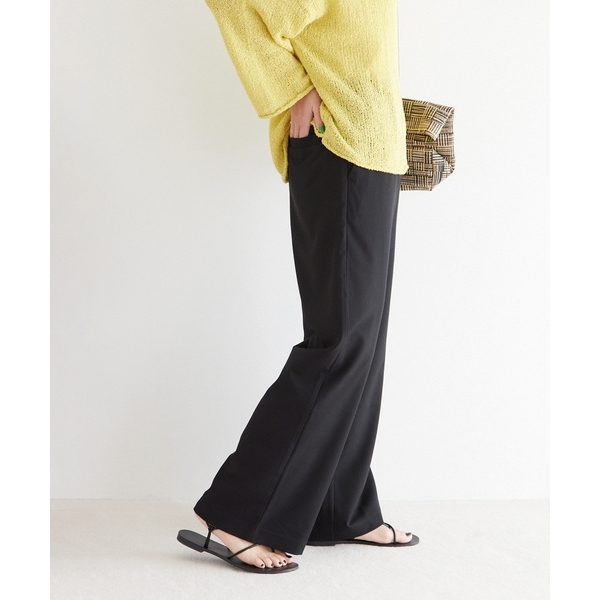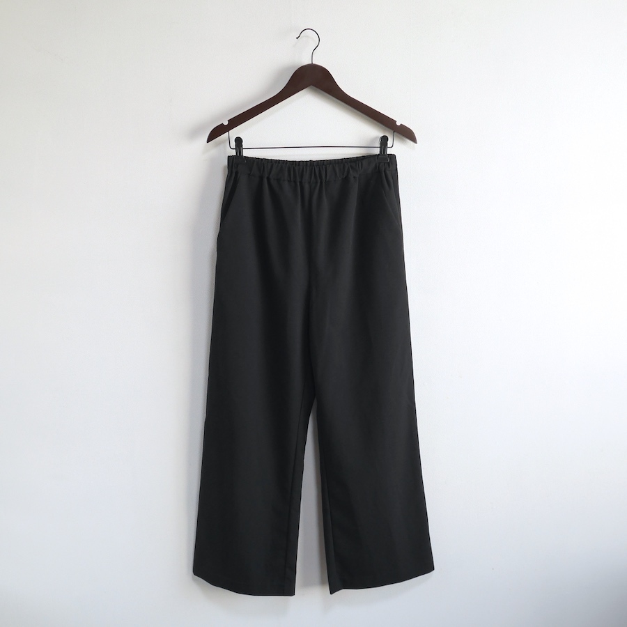 万能に使えるセミワイドシルエットのイージーパンツ。 ウエストはゴムのイージー仕様でリラックス感があり、使いやすさも抜群です。 さらっとした素材でシーズンレスで使用可能です。