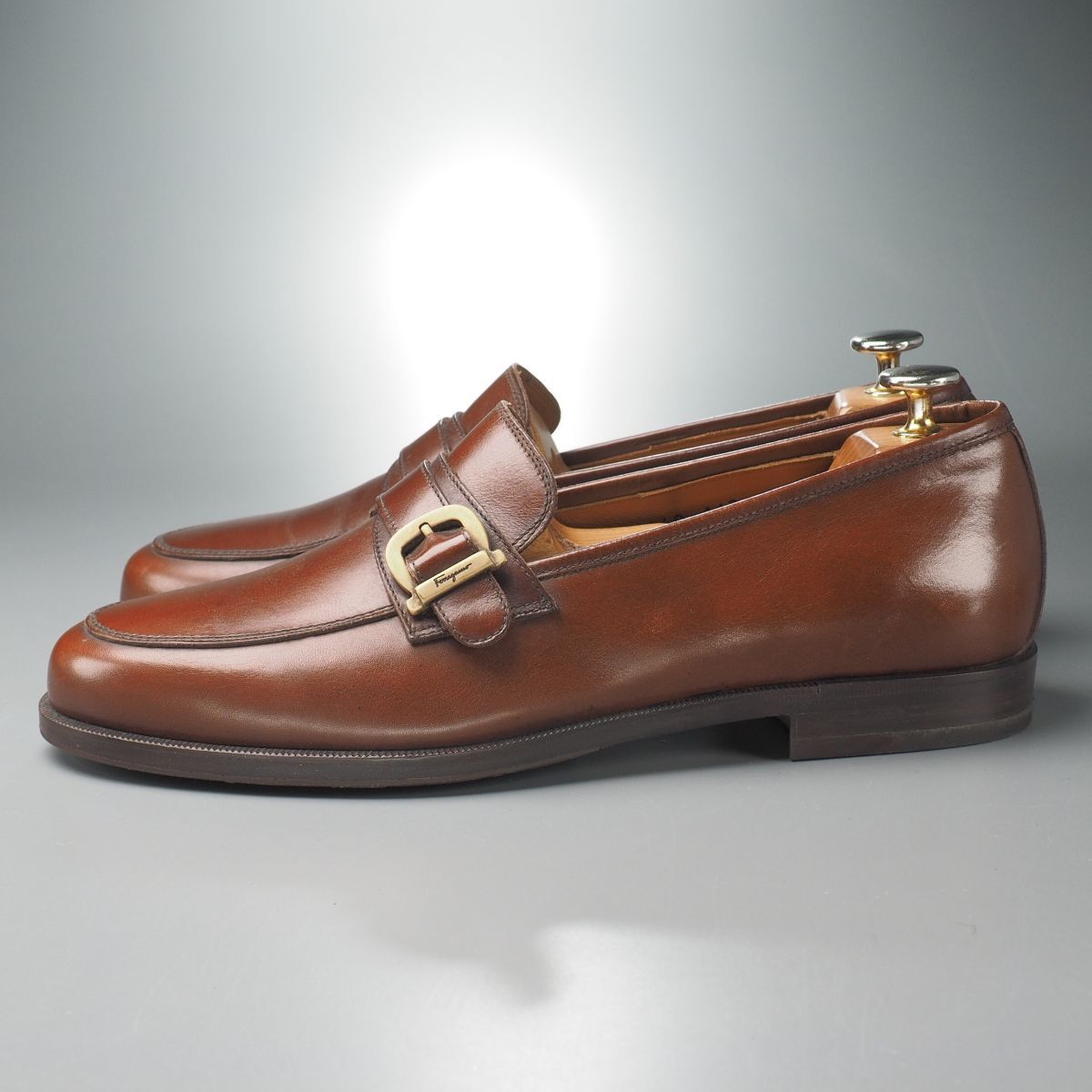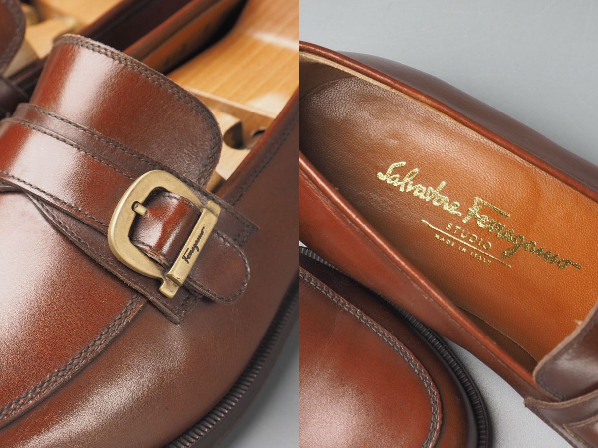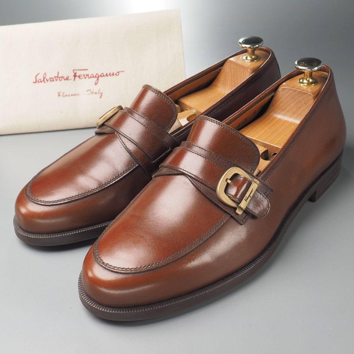| GS2336//イタリア製*サルヴァトーレフェラガモ*メンズ8EE/ガンチーニ/ストラップローファー/レザースリッポン/革靴/茶/ブラウン | |||
