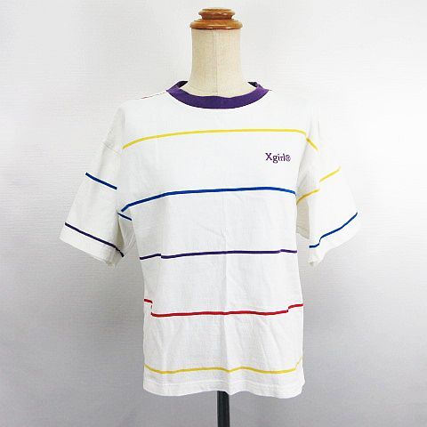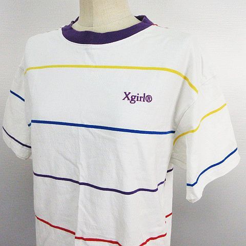 エックスガール x-girl Tシャツ カットソー 半袖 クルーネック ボーダー オーバーサイズ ロゴ コットン 2 ホワイト ※EKM レディース
