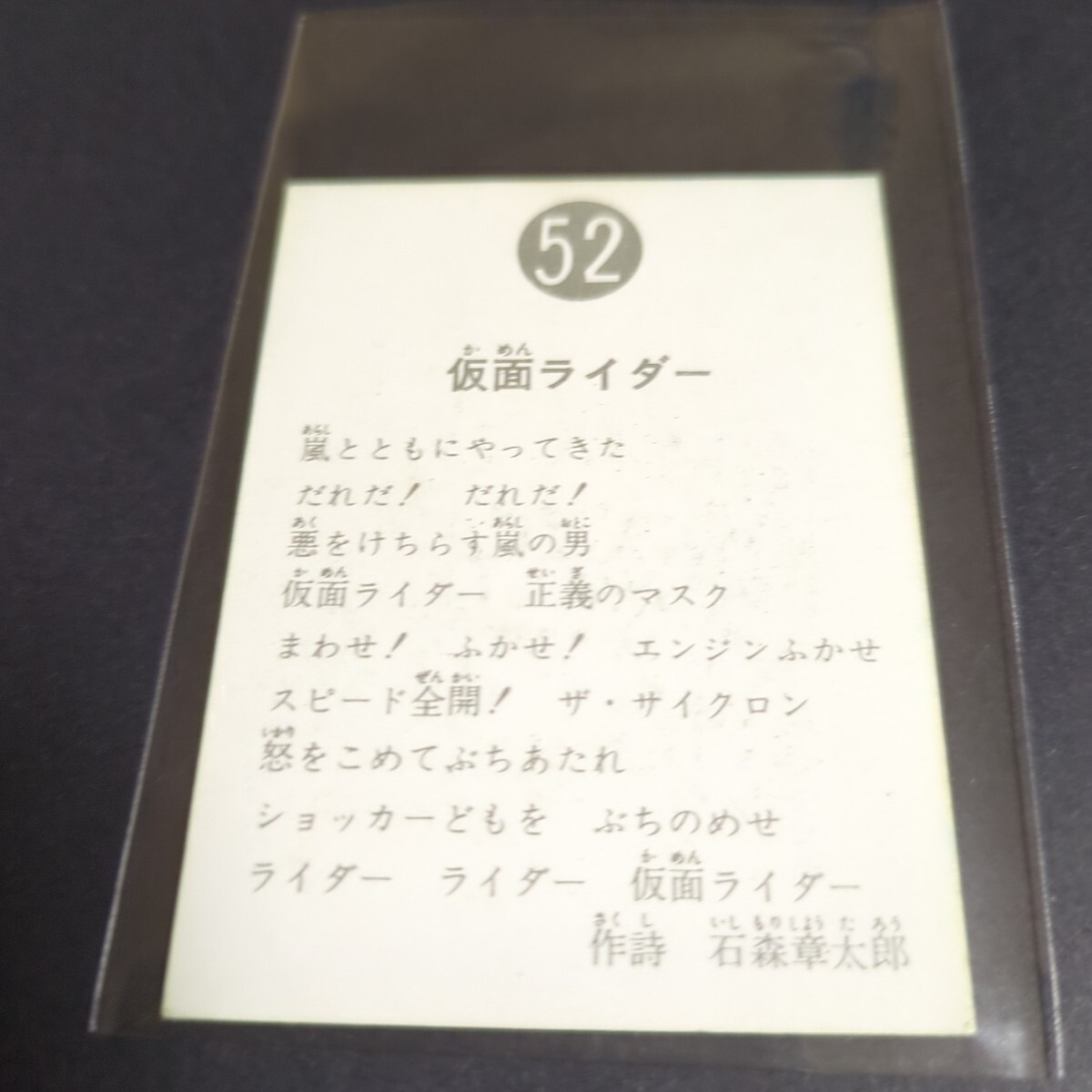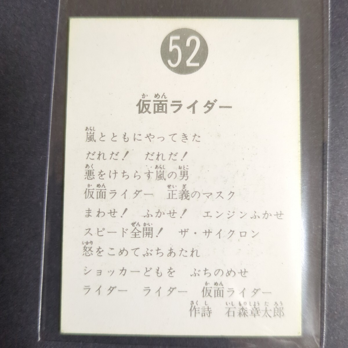 旧カルビー仮面ライダーカード:52番 仮面ライダー【表14局版】(中古・美品)です。