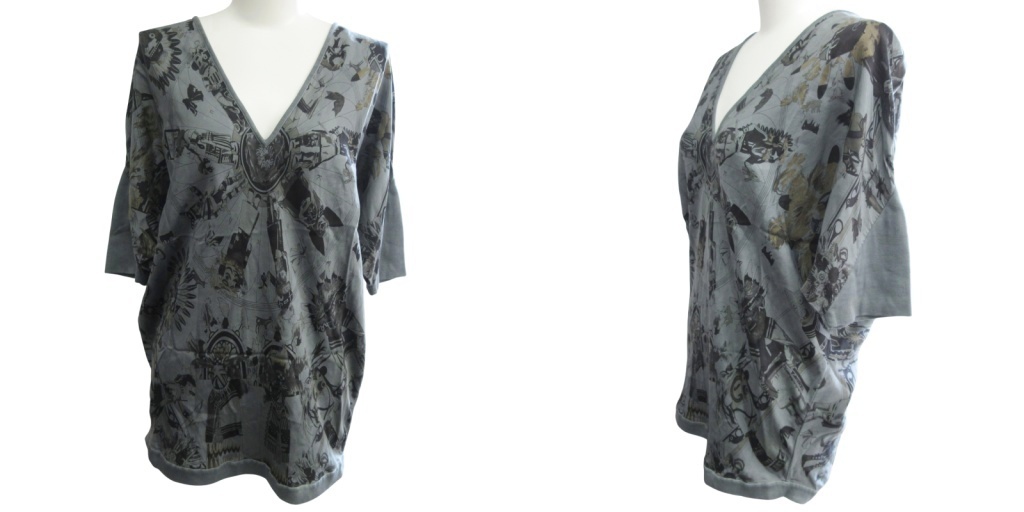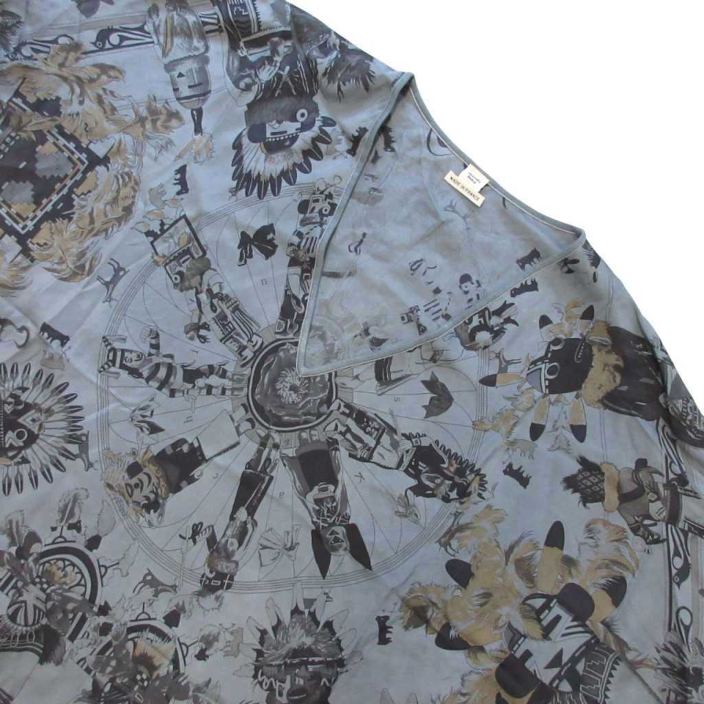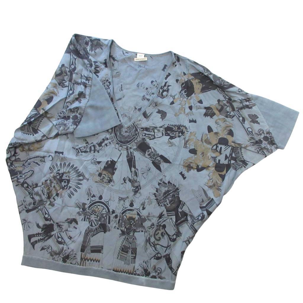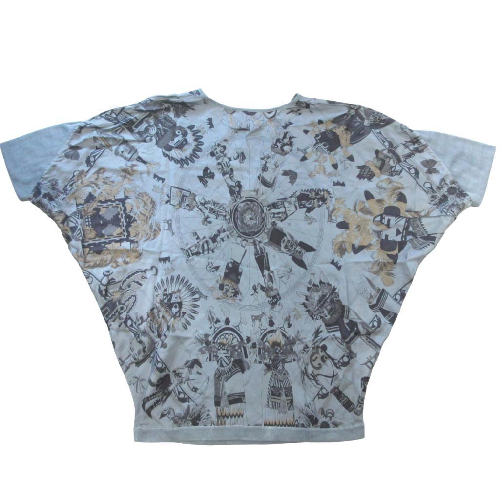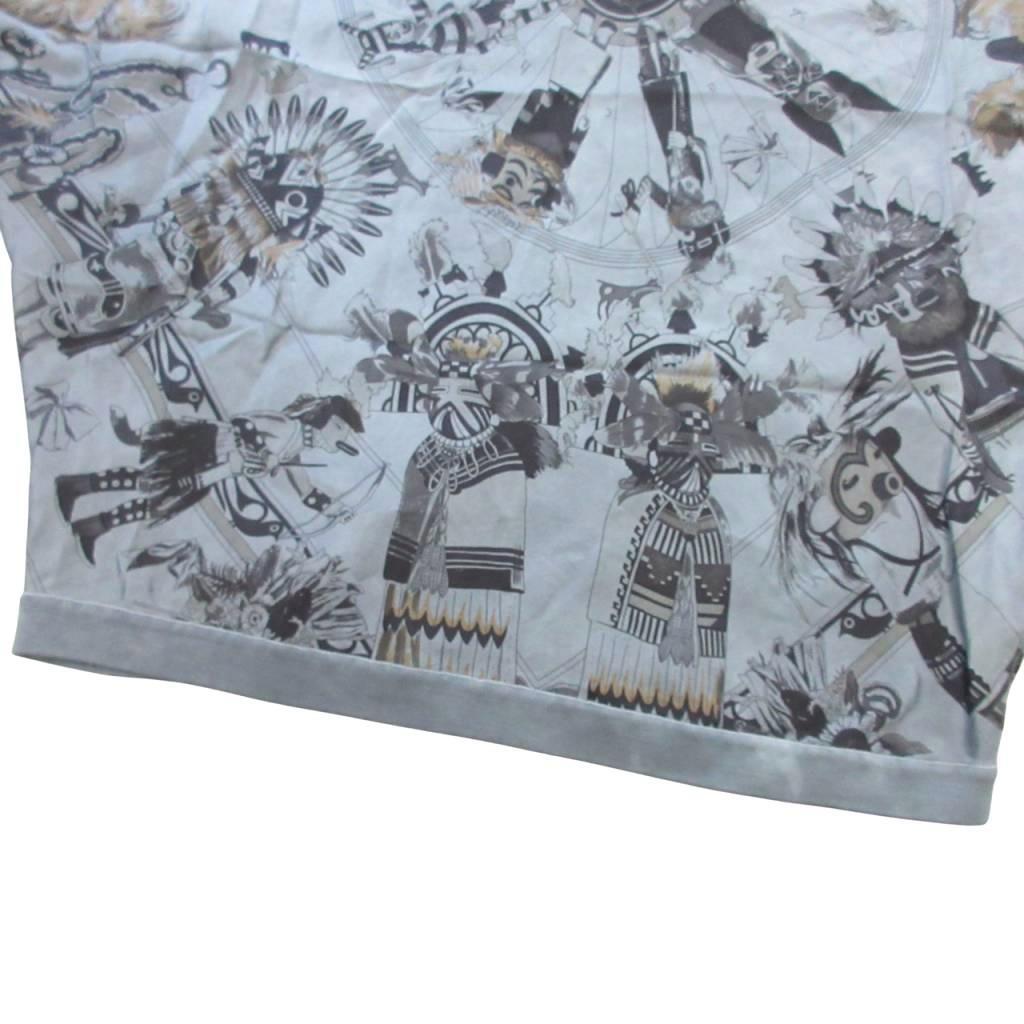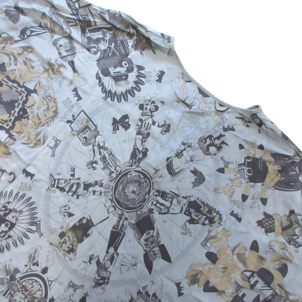 エルメス HERMES 希少 ゴルチエ期 ツイルレーヌ Kachinas カチナ 民族 半袖 カレ ドルマンスリーブ カットソー シルク グレー ■MNK1