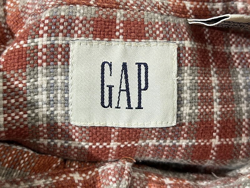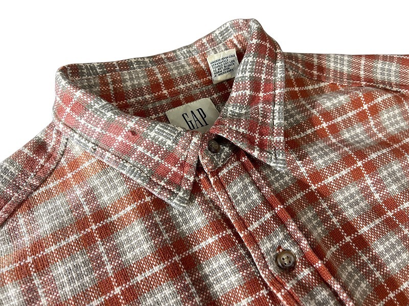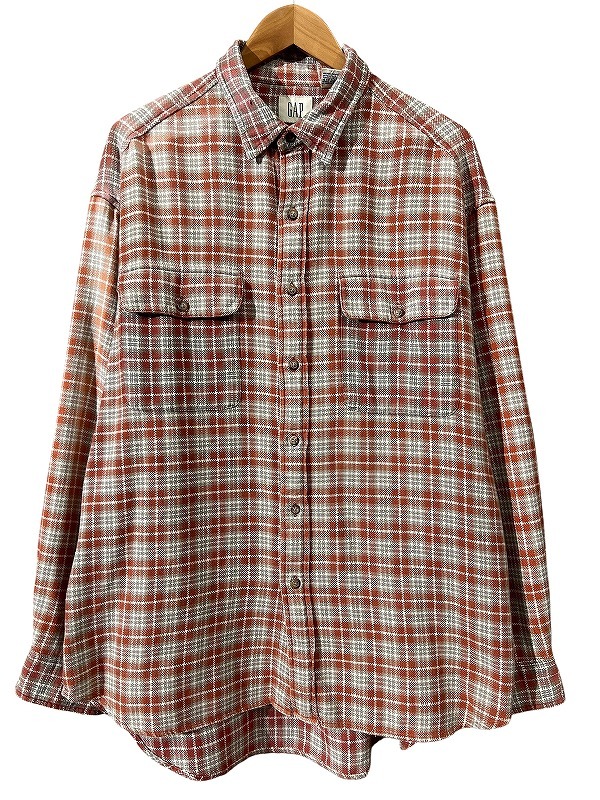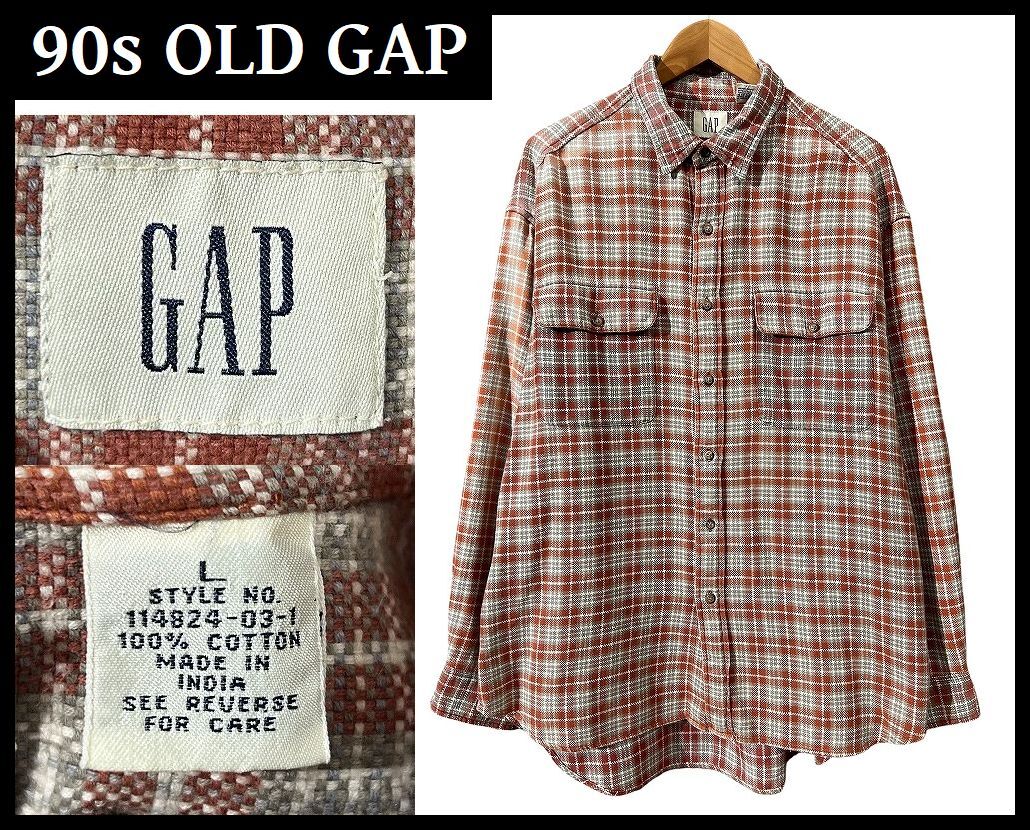 送料無料 G② 90s インド製 OLD GAP オールドギャップ 114824 両胸フラップポケット チェック柄 編み 長袖 フランネル シャツ ネルシャツ L