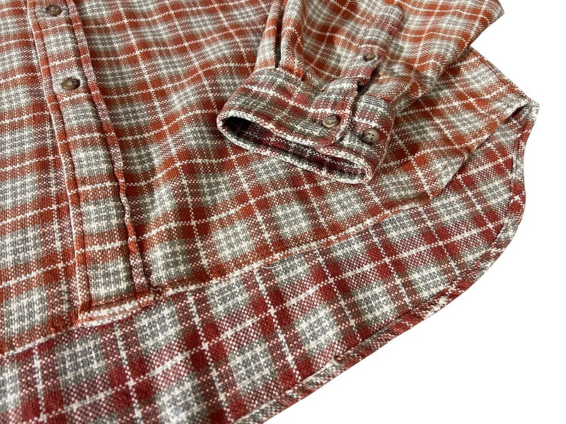 両胸 フラップポケット チェック柄 編み 長袖 フランネル シャツ ネルシャツ L