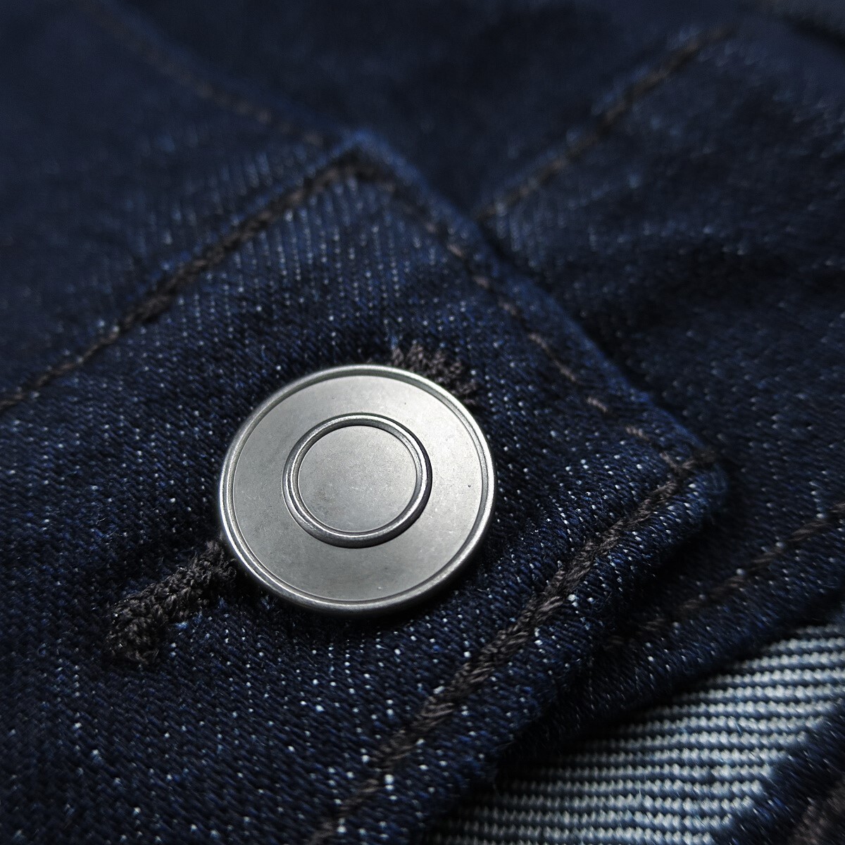 ■ストレッチの効いたデニム素材を使用。 ■レギュラーオンス(10オンス)で、季節を問わず着られる素材です。 ■ワンウォッシュで仕上げ、濃紺すぎず、スタイリッシュなインディゴの味わいを楽しめます。 ■すっきりとした、スキニーシルエットのデニムパンツです。 ■履き心地の良いミッドライズ。 ■ポケット周りやヨークなどに、ポイントでWステッチやトリプルステッチを入れ、ポイントにしています。 ■シンプルなボタンやリベット、落ち着いたトーンのステッチを施し、カジュアルなデニムですが上品な印象にしました。 |