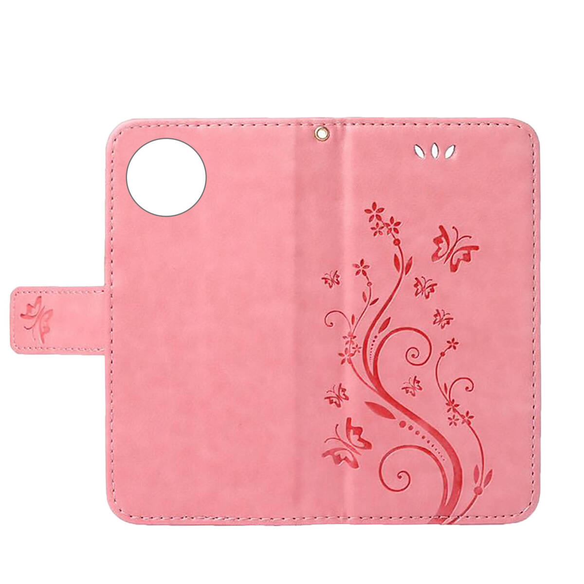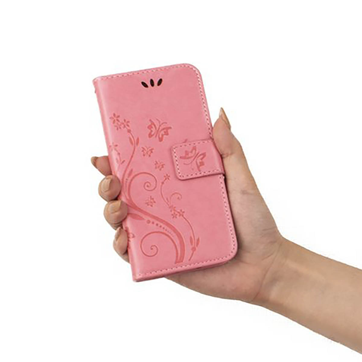蝶と花が型押しされた 大人可愛い 手帳型スマホケース