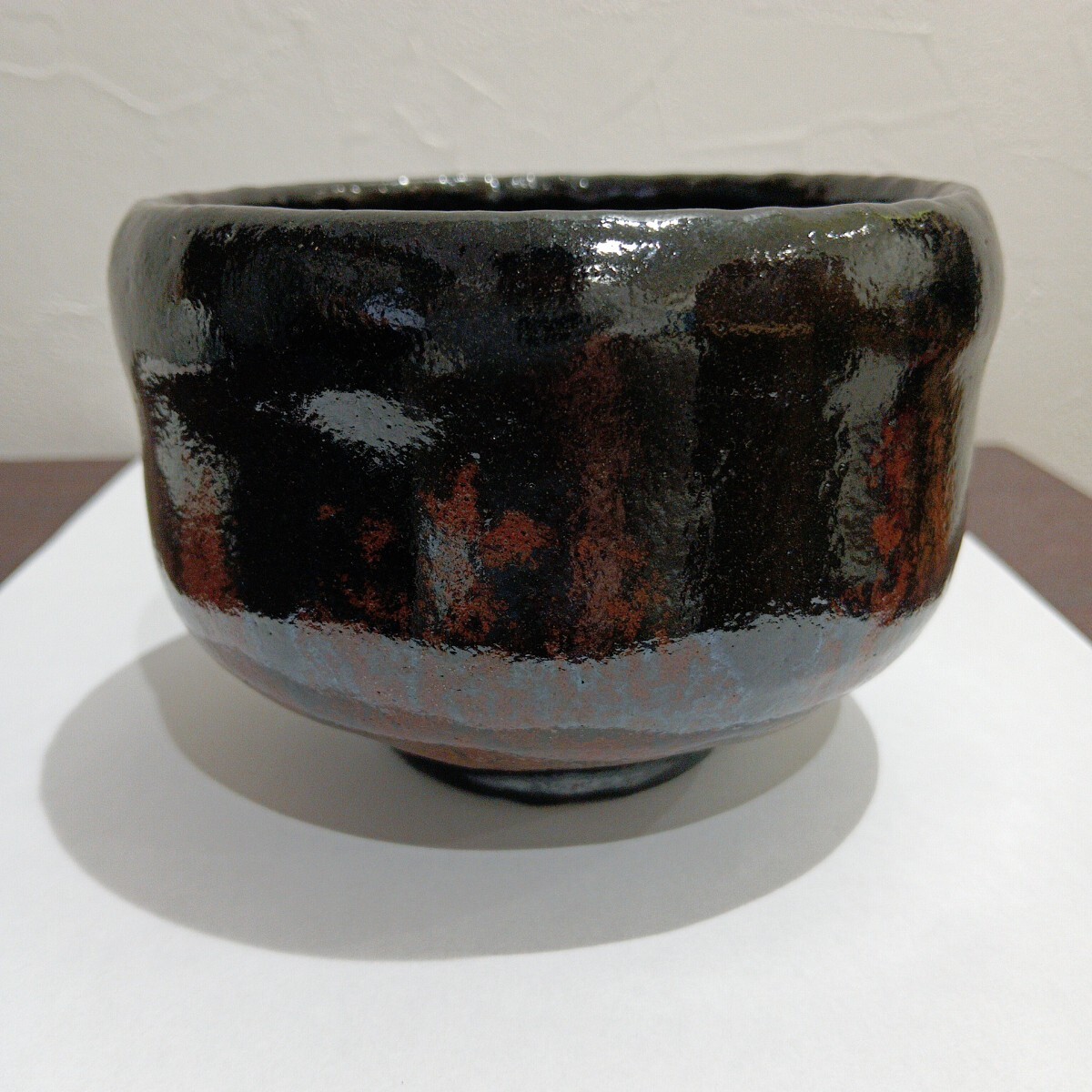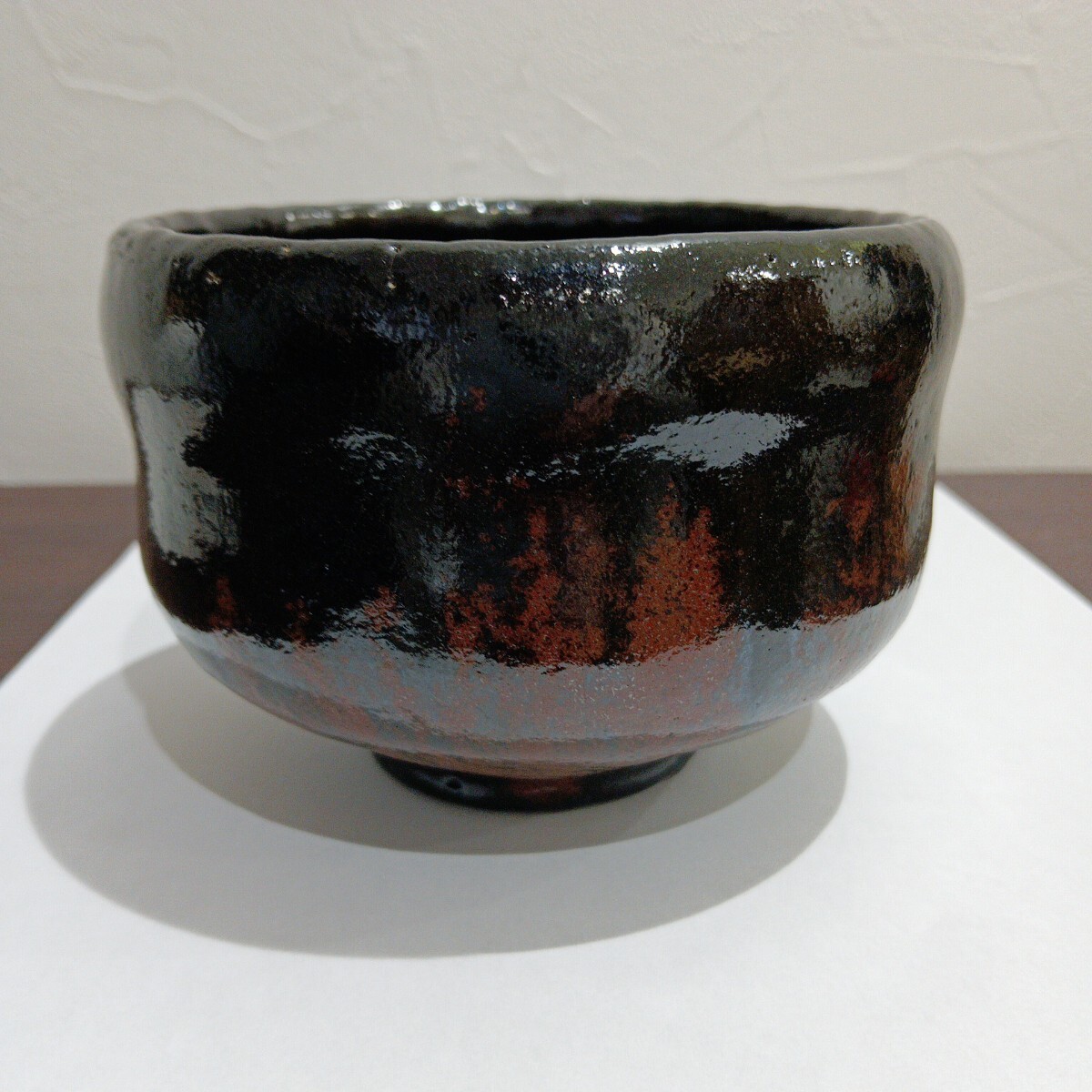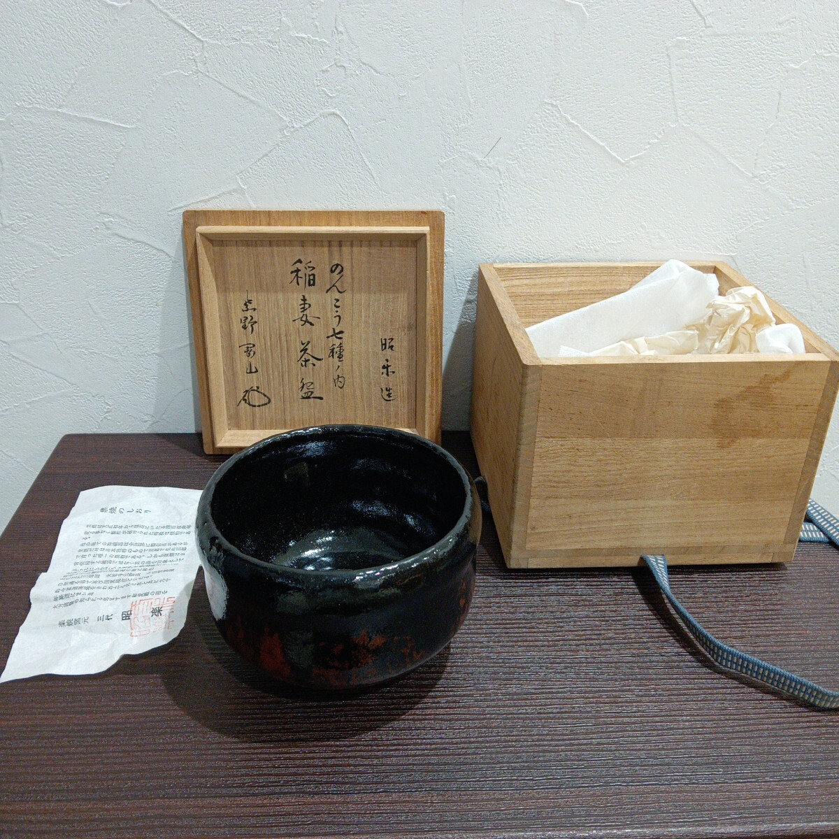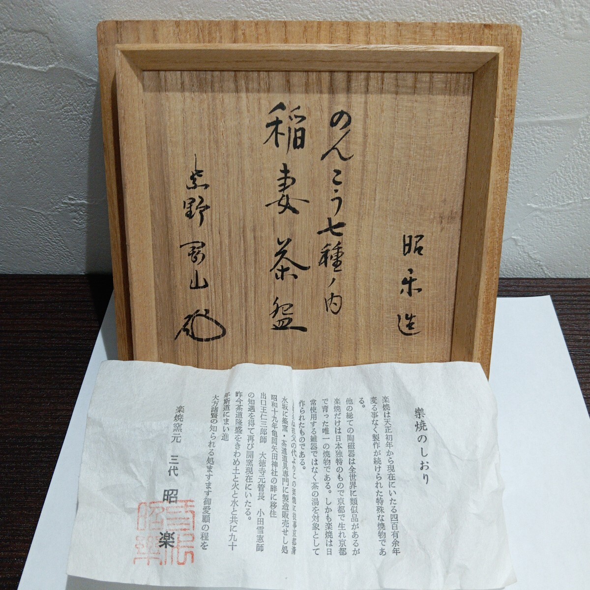 楽焼 窯元 三代 昭楽 のんこう七種の内 稲妻茶碗 黒楽茶碗 茶道具 共箱 しおり 1円スタート