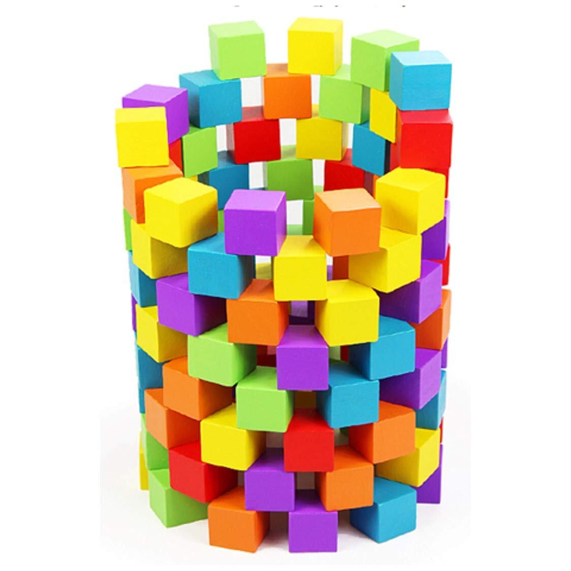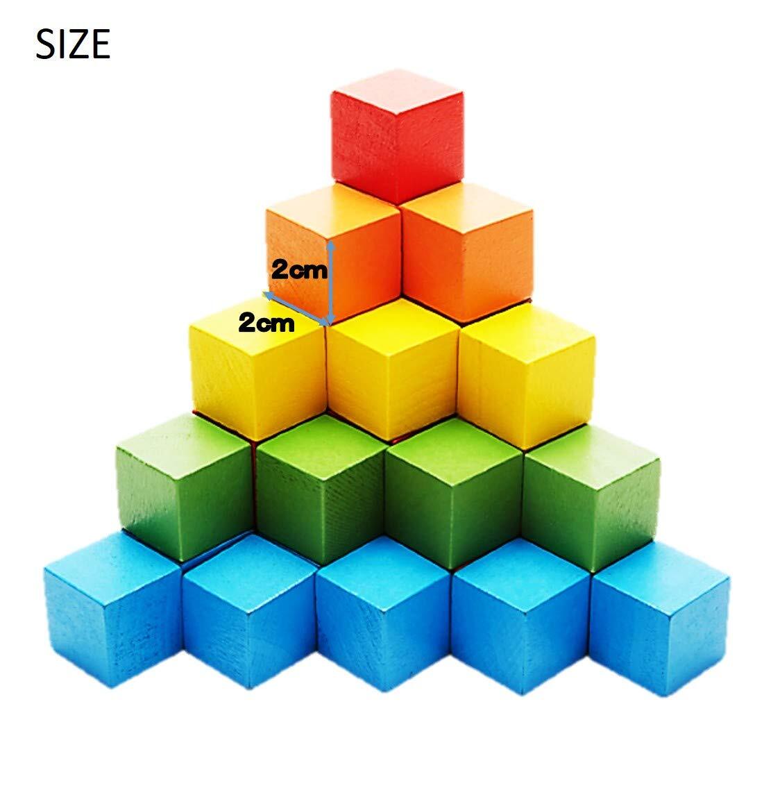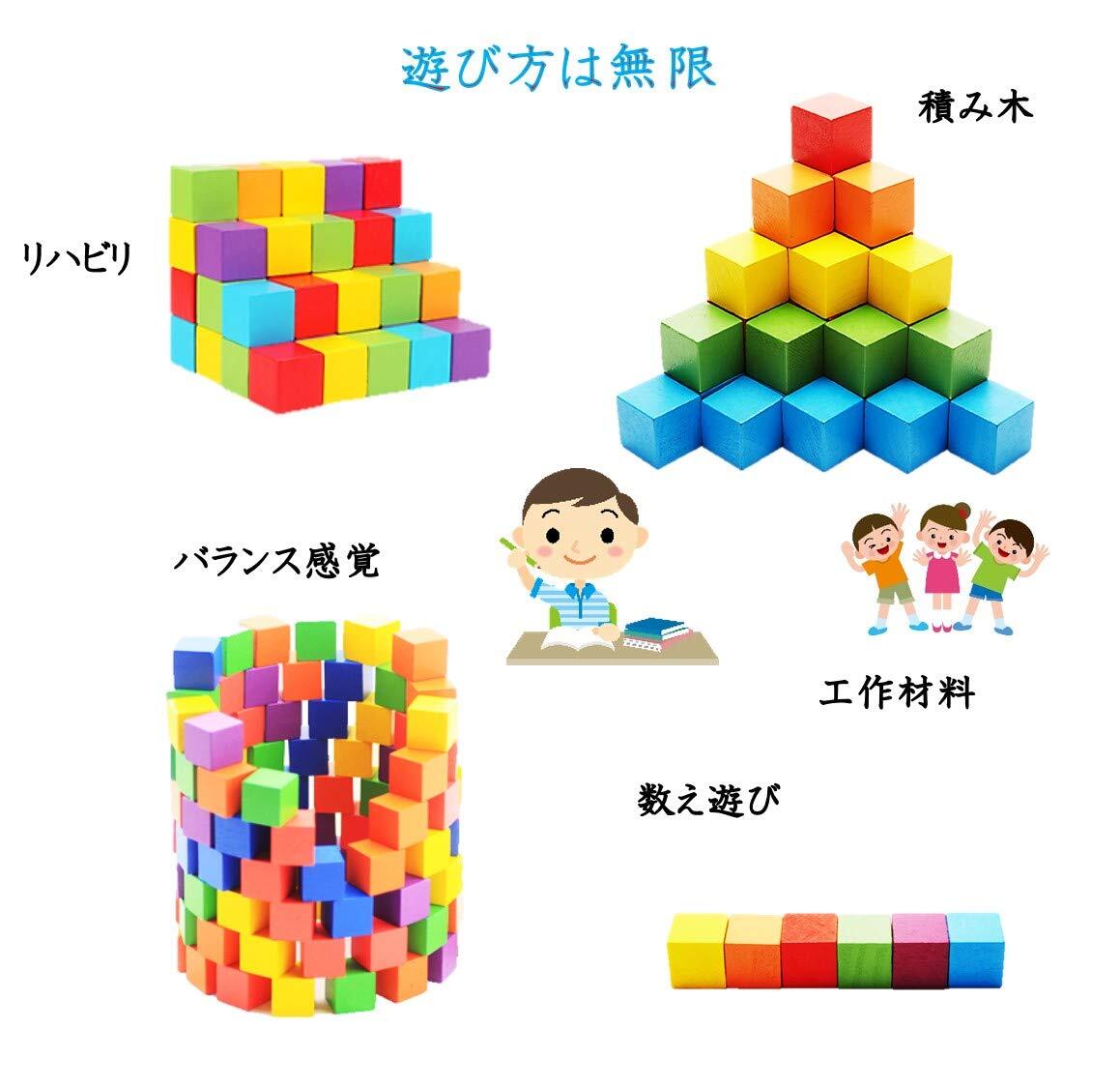 ST TS 木製 積み木 キューブ ブロック天然 原木 カラフル 子供 算数 体積 図形問題 小学生 つみき 100個セット